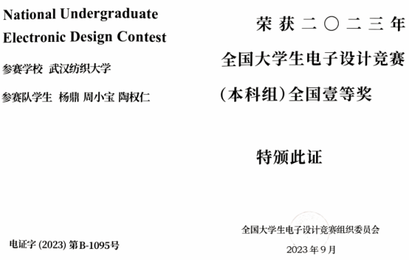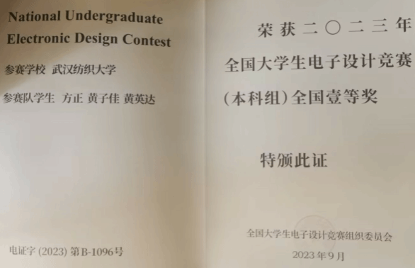 2023年全国大学生电子设计竞赛(本科组)全国一等奖两项