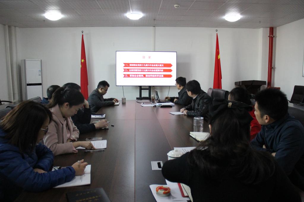 首先,党委书记余家友带领大家学习了党的十九届六中全会精神,分别从以下三个方面展开学习:一是深刻领会党的十九届六中全会重大意义,二是全面把握党的十九届六中全会重要内容,三是贯彻全会精神,推动学院科学发展。余书记强调,要深入学习、宣传、贯彻党的十九届六中全会精神,把此项工作作为当前和今后一个时期的重大政治任务。