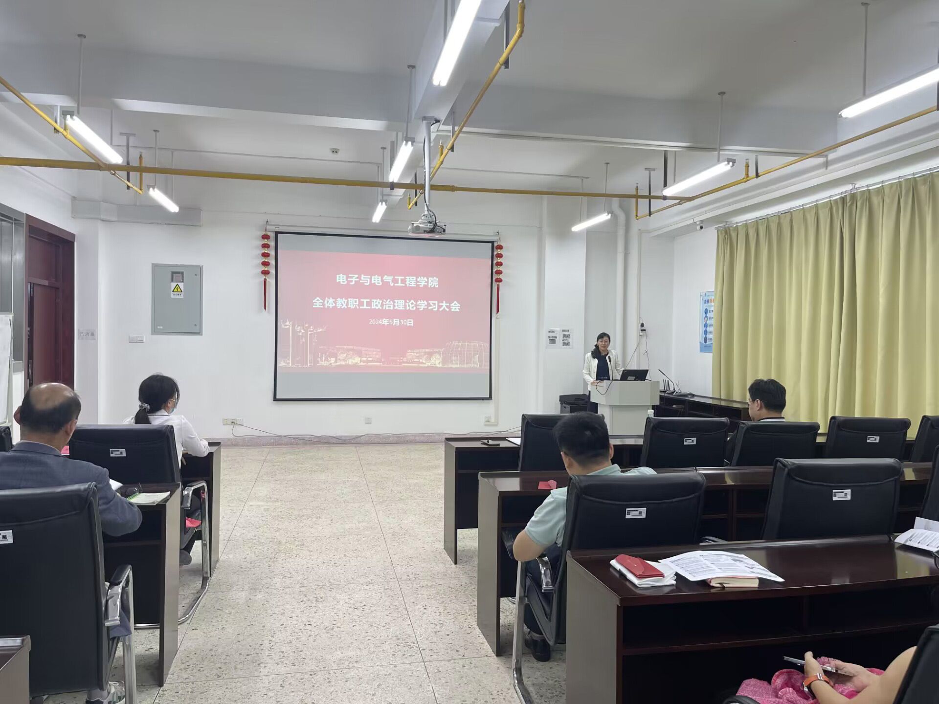 5月30日下午,电子电气学院在崇真楼南楼6013会议室开展教职工理论学习,会议由学院党委书记张红鑫主持,全体教职工参加了此次学习会议。