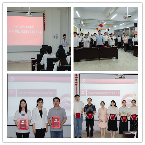 为庆祝中国共产党成立102周年,激励广大党员干部担当作为、奋发向上,大力营造创先争优浓厚氛围,6月29日下午,电子电气学院在崇真南楼A6013举行“七一”表彰暨新发展党员宣誓大会。学院领导班子、党委委员、各党支部书记、全体教师党员、学生党员代表、新发展党员参加了本次大会,会议由党委副书记张莹主持。