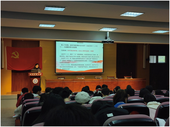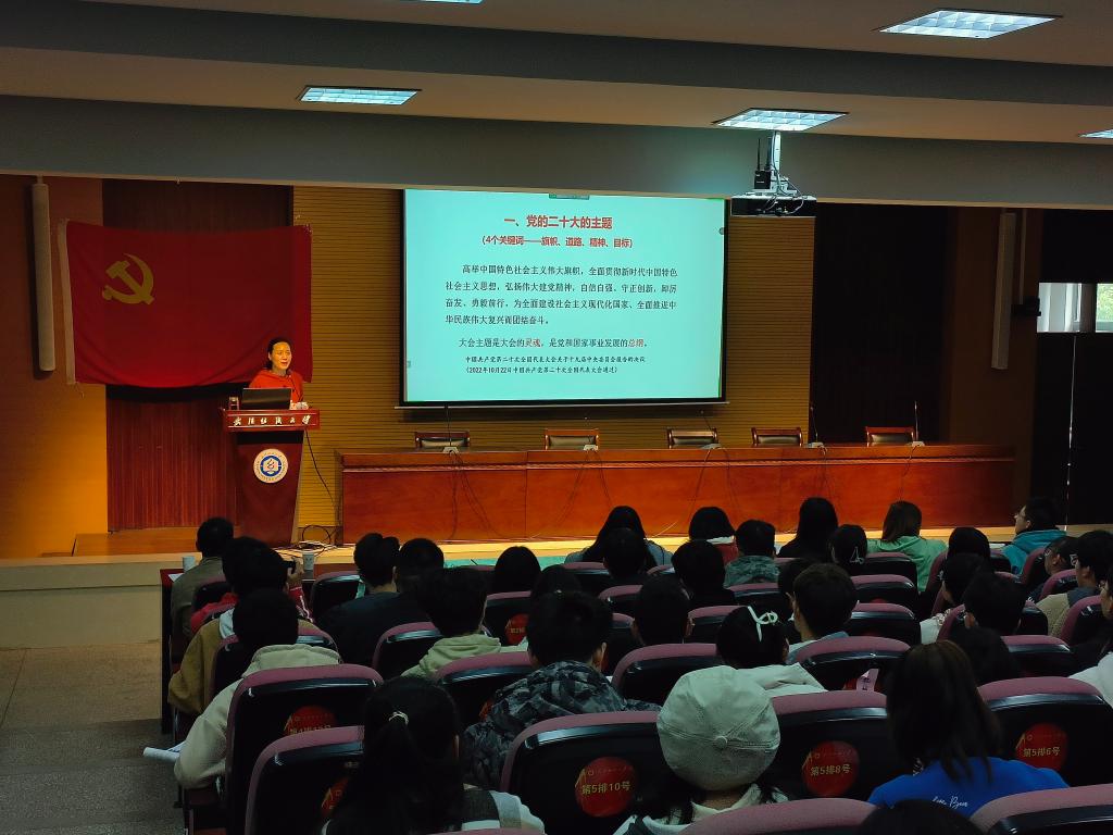 金艳教授以《用新的伟大奋斗创造新的伟业——学习贯彻党的二十大精神》为题,为分党校学员作了首场专题报告。金艳从党的二十大主题、过去5年的工作和新时代10年的伟大变革等七个维度出发,全面阐述、系统解读了党的二十大报告主要内容,并以“旗帜、道路、精神、目标”为关键词,高度凝练了党的二十大的重要意义与内涵实质。金艳强调,党的二十大为青年大学生成长成才、励志报国指明了方向、提出了明确要求。她号召,广大青年应用青春之梦点缀信仰之花,以奋斗姿态拥抱时代春风,多学本领,学好本领,积极投身祖国经济社会建设,为实现中华民族伟大复兴作出应有的贡献。