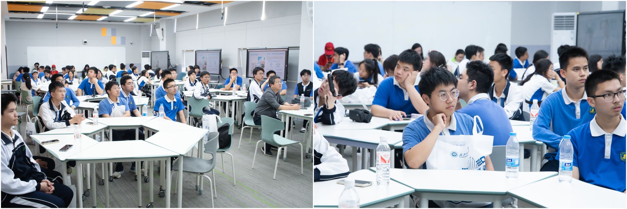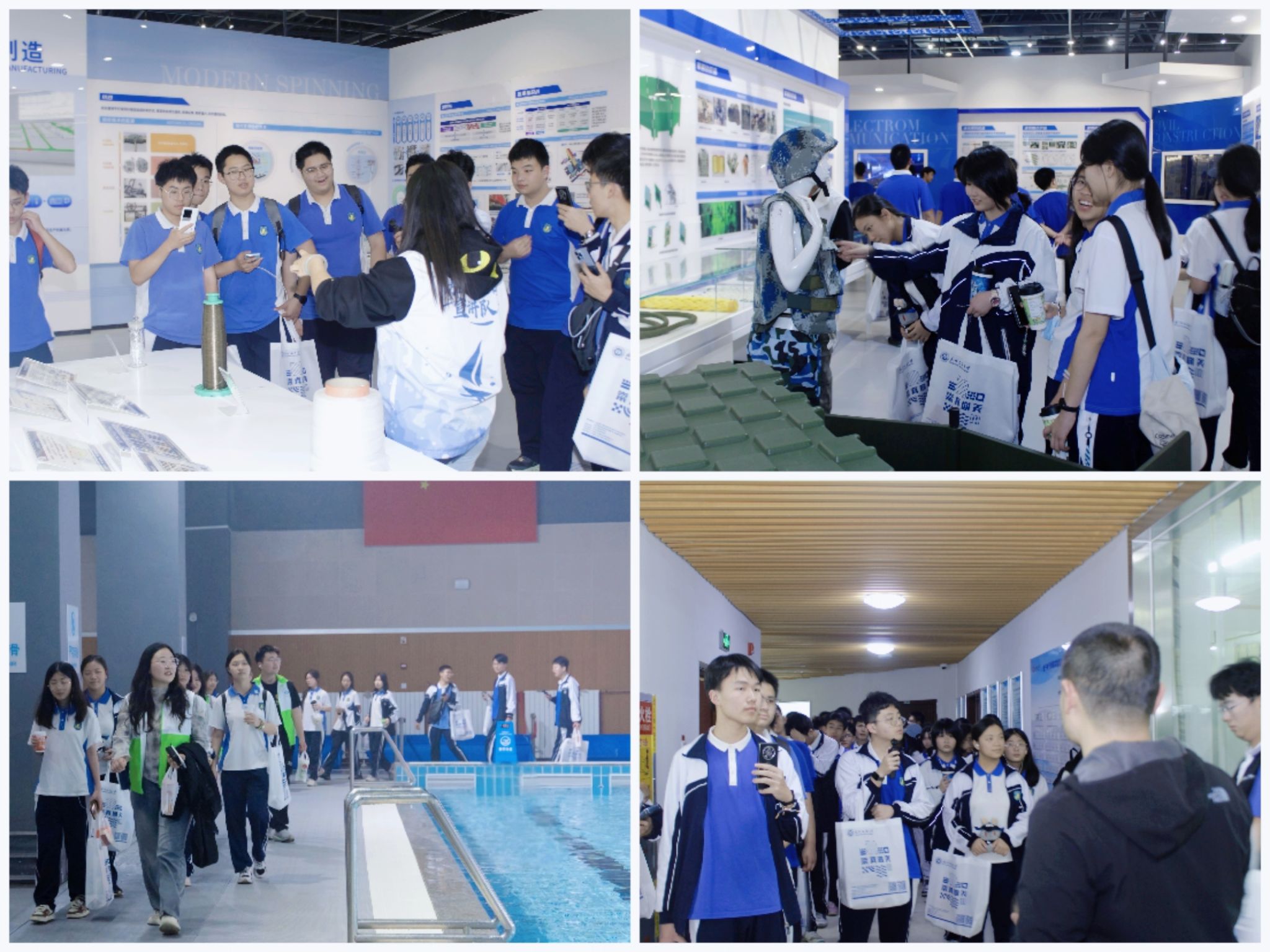研学活动中,在电气学院师生志愿者的带领下,平冈中学学子们兴致勃勃地参观了纺织科技馆、全国重点实验室、电子电气学院实验室、9号教学楼智慧教室、环湖绿道、图书馆、体育馆、游泳馆等场所。边走边看、边听边问,每到一处,同学们与志愿者交流,和教授们沟通,近距离接触高精尖的仪器设备,亲身体验了浓厚的历史底蕴和文化魅力,领略了舒适和谐、生机盎然的自然环境,提升了对高等学府的无限向往和科学技术的美好憧憬。