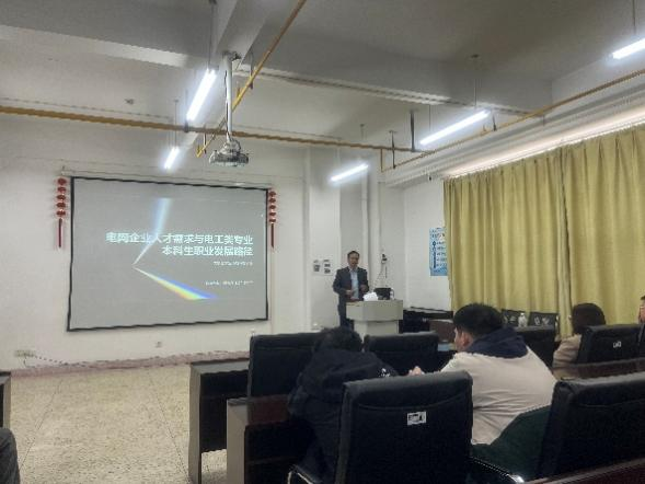 在随后的专题报告中,邀请有校外专家邓小明通过国家电网、南方电网等龙头企业近五年招聘数据,系统剖析电网人才需求三大趋势:一是新能源并网技术岗位需求大增,二是数字化运维人才缺口持续扩大,三是“技术+管理”复合型人才成为晋升关键。专题报告结束,学生踊跃的与报告专业进行了感兴趣问题的沟通。