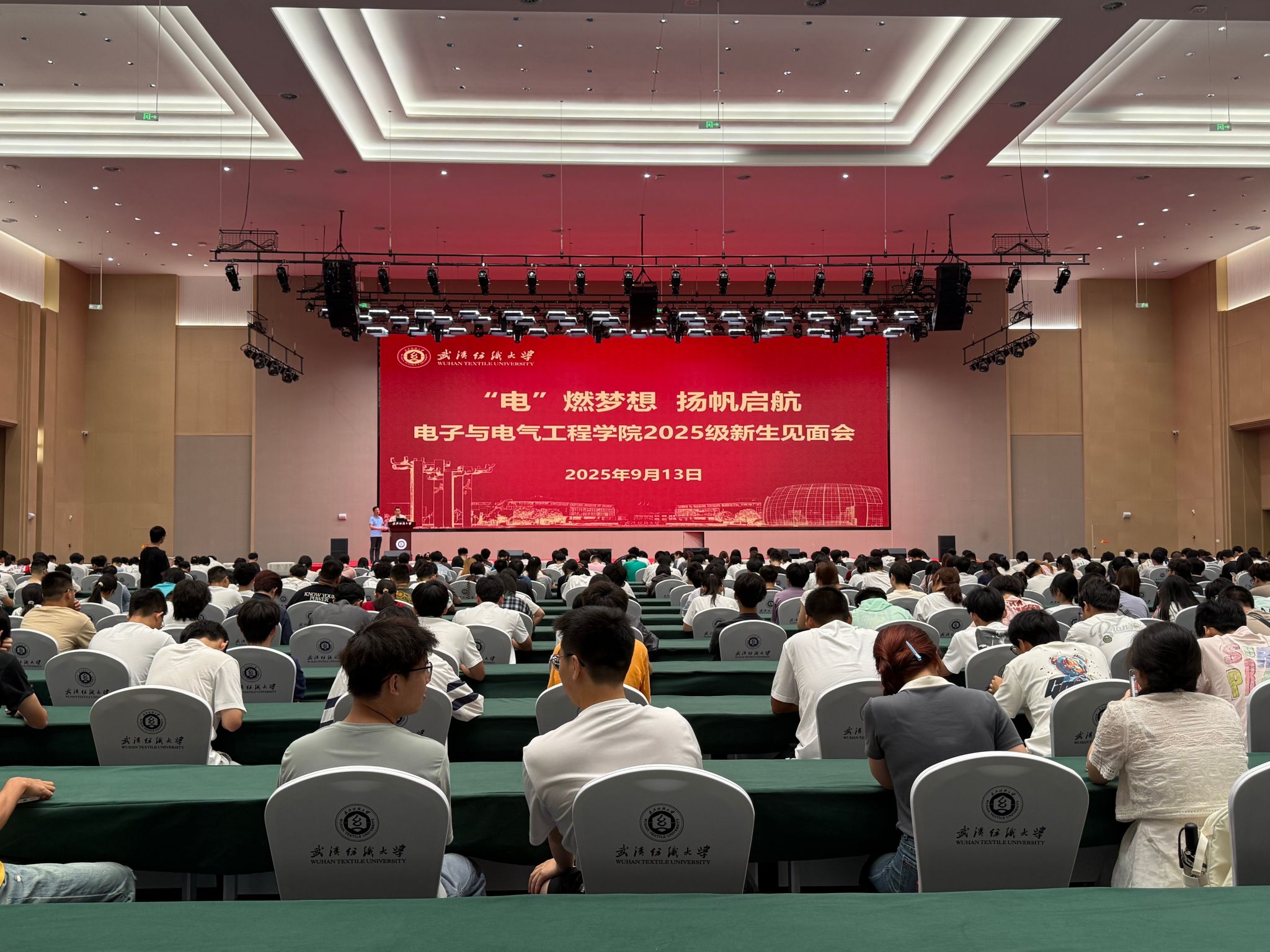 9月13日上午,电子电气学院在阳光校区建全会堂建全厅举行2025级新生见面会暨院长答疑课。学院党委书记张红鑫、院长刘侃、副院长韩谷静及各系系主任参加新生见面会,见面会由党委副书记张莹主持。