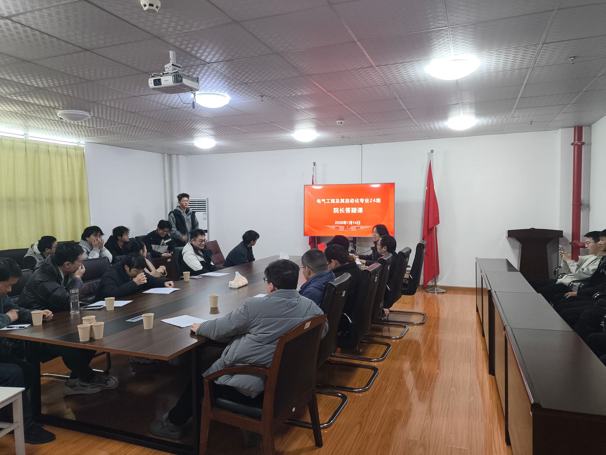 为开好学院领导班子民主生活会奠定坚实基础,深入贯彻落实立德树人根本任务,进一步加强学风建设,促进师生深度交流,切实回应学生在学业发展与生涯规划中遇到的困惑与挑战,1月13日至14日,学院在实训楼5033举办了院长答疑课暨师生座谈会,听取学生意见和建议,副院长韩谷静教授、副书记张莹、电气专业骨干教师代表、辅导员及电气专业学生参与了本次活动。