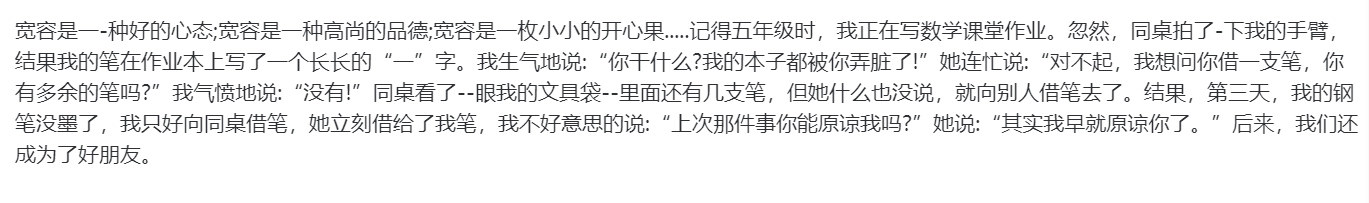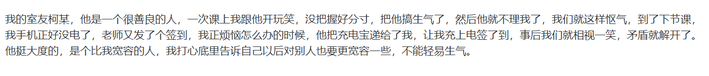 此次活动面向在校学生以线上的形式开展。前期通过WilliamHill中文官方微信公众号进行推送以及班级宣传委员进行班级宣传动员。活动过程中,引导学生回忆起生活中他人对自己的宽容的事件,在邮箱中写下自己身边关于宽容的事例,并进行邮箱投稿。同学们展开了踊跃的报名投稿,有人回忆了身边的宽容小事,有人给我们讲了宽容的小故事,邮箱投稿就像一个小小的树洞,装载着平日没有说出的话语,让宽容这一品质得以彰显。