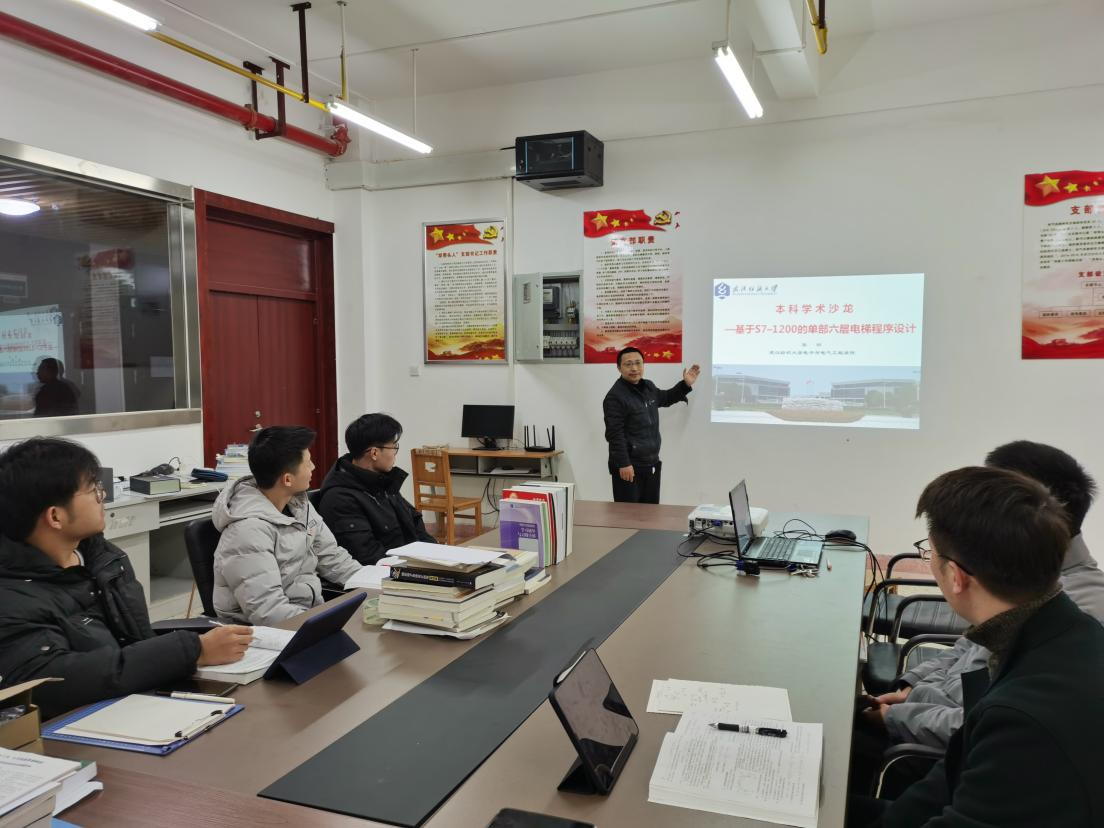 最后,围绕如何在PLC中实现多部电梯的群控算法,各位同学发言谈了自己的理解和困惑,参会的教师就相关学术问题进行了深入的交流与探讨。