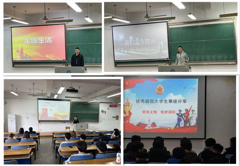 2019级各班通过开展班会,由班主任和班长向同学们阐述了大学生入伍对于自身塑造和锻炼成才的重要意义,并详细介绍了参军的优先优待、选拔培养、退役就业以及考研升学方面的诸多优惠政策,号召符合条件的班级同学积极报名参军入伍。