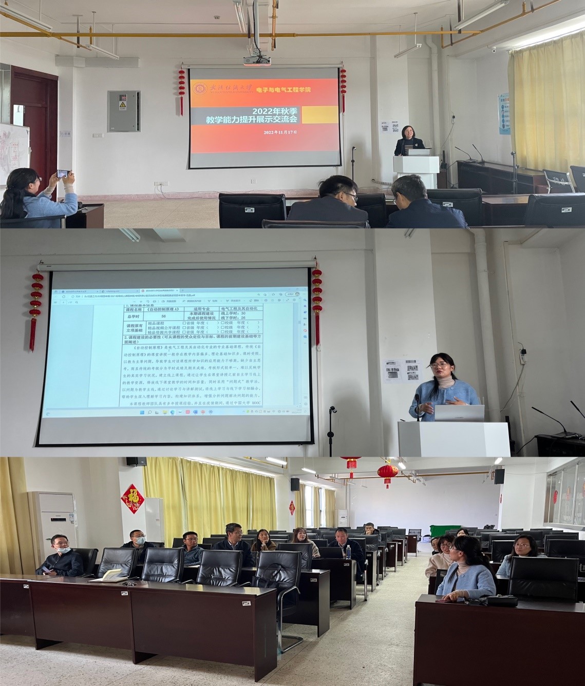 为提高教师业务水平和专业素养,打造教学基本功扎实、综合素养高的师资队伍,11月17日下午1:30,WilliamHill中文2022年秋季教学能力提升展示交流会在崇真楼A6013举行。活动由教学副院长韩谷静主持,10余名中青年教师踊跃参加。本次交流会聚焦“在线课程建设”,邀请了我院去年获批校级在线课程建设《自动控制原理》的汪晶老师给大家分享在线课程申报、建设和实践的经验与体会。