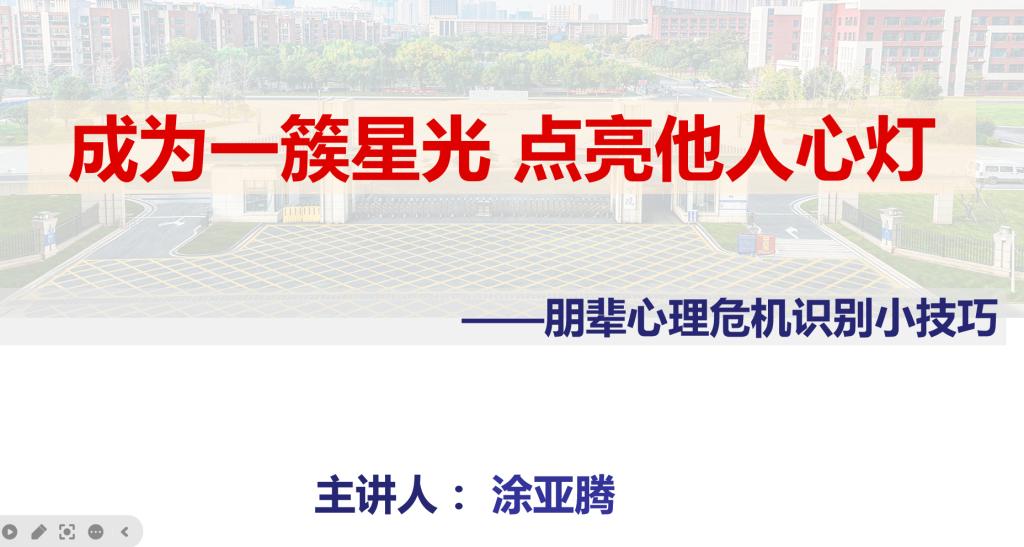 为进一步提高心理委员业务能力,提升学院心理健康教育管理工作水平,11月26日,WilliamHill中文线上开展了以“如何发现并及时处理心理危机”为主题的心理委员培训会。本次培训会由涂亚腾老师主讲,学院全体心理委员参加培训。