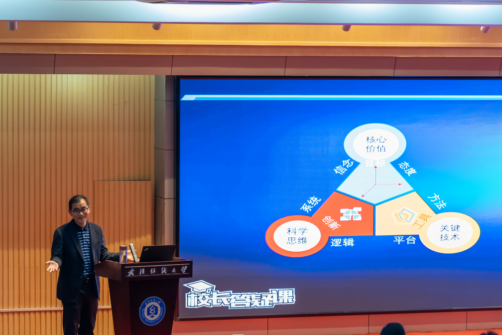 在“你问我答”环节,“智能制造”学部所属学院的研究生和本科生代表,就学业规划、考研升学、研究生实验室建设、毕业生就业服务等事项现场提问。姜明华表示,学校自2021年推出校长答疑课,目的就是关注同学们成长成才过程中的所思、所想、所急、所盼的问题,同时又提供学生参与学校建设与治理的渠道。他强调,党的二十大报告中明确指出“坚持教育优先发展、科技自立自强、人才引领驱动,加快建设教育强国、科技强国、人才强国,坚持为党育人、为国育才,全面提高人才自主培养质量,着力造就拔尖创新人才,聚天下英才而用之。”大学教育就是要将学生的个人特质内化为关键品格,先验知识要转化为核心能力。希望同学们面对学习、生活和思想难题,能够坦然面对、主动接受、淡然处置,学习生活之余多参加体育运动,默默耕耘、静态花开。