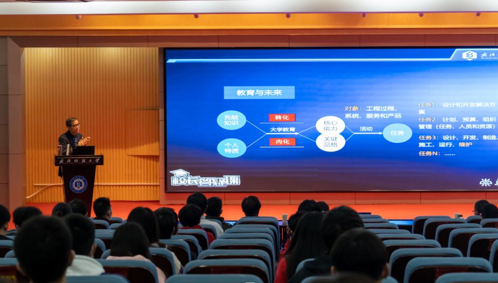 针对“智能制造”学部学科专业特点,姜明华着重讲解了工科学生“学识成才”应该具备怎样的能力,如何培养自身能力。通过讲解工程活动定义、分析复杂工程活动的特征,进而提出“融合发展、服务发展、协调发展、创新发展、全面发展”五大学生发展理念。姜明华以横渡长江类比工程实践问题,从“基础能力、专业能力、工程能力”三个方面,提醒同学们要学好基础课程、专业基础与专业课程、综合实践课程。