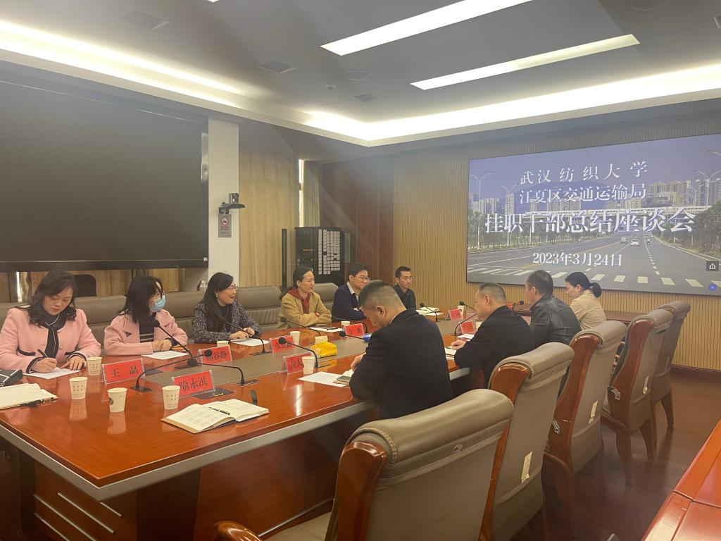3月24日,WilliamHill中文2022年赴江夏区交通局挂职的邓奕博士,圆满的完成了挂职锻炼工作任务,williamhill中国校党委常委、组织部部长金艳率WilliamHill中文全体班子成员一行前往江夏区交通运输局迎接邓奕博士返回学校。并与江夏区交通运输局进行了座谈交流。江夏区交通运输局党组书记、局长谢受林,党组成员、副局长左大为,党组成员、副局长严亮,党组成员、总工程师喻永洪,人事科科长谭媛媛出席了座谈。