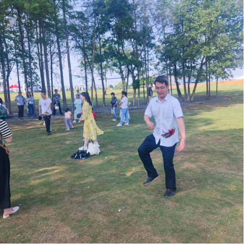 在风景如画的拾光牧场,教职工们参与了各种趣味运动活动,唱歌、放风筝、乒乓球、踢毽子、步行比赛等。此起彼伏的加油声、欢笑声,为这个风景如画的牧场增添了几分欢愉与生气。这些趣味活动既锻炼了大家的身体,又增进了彼此之间的交流和感情。在步行比赛的活动中,牟迪老师获得了徒步比赛一等奖。