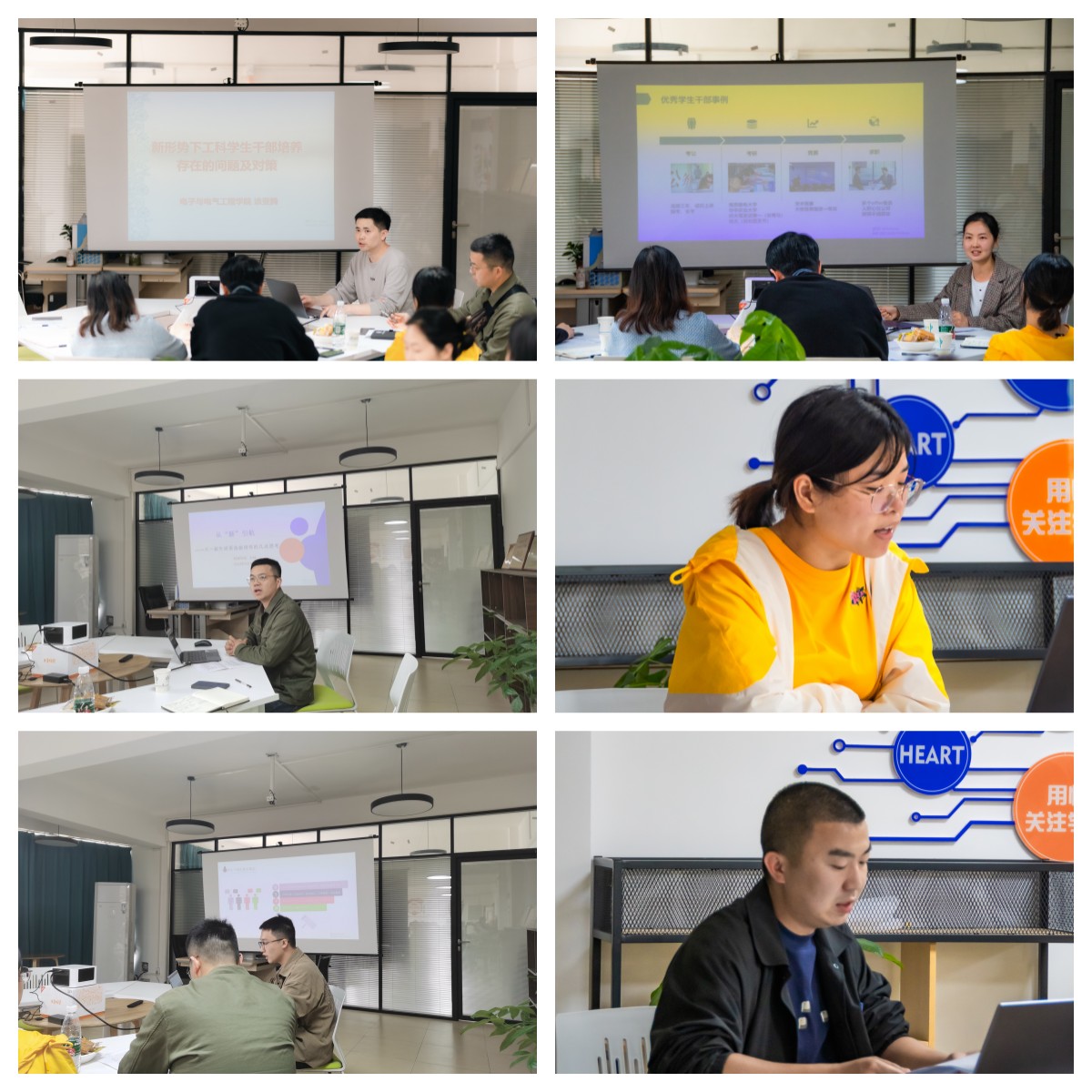 本次沙龙,六位辅导员老师围绕“新时代学生干部的培养与管理”主题,结合所在学院专业特色和工作实践经验展开交流。WilliamHill中文涂亚腾老师以《新形势下工科学生干部培养的问题及对策》为主题,结合工科学生干部的特点,提出加强学生干部的思想建设,用好网络,加强学生干部的日常培训等措施加强学生干部培养。数理学院方媛老师以《朋辈领航,星火聚光——学生干部的处境和发展分析》为题,提出深化职责认知,提升业务能力;注重能力培养,选拔后加强培养和指导;给予资源倾斜等措施提升学生干部的能力和素养。机械学院方林老师以《从“新”引航——大一新生班委选拔培养的几点思考》对新生班委的选拔任用提出思考,他总结为说给班委听、启发班委想、带着班委干、督促班委练,从而使新生班委克服“官”念,养成“团结、教育、服务”的工作作风,从而增加其战斗力和号召力。材料学院曾玉竹老师以《“05后”学生干部培养的新情况、新问题、新思路》对“05后”学生以及学生干部进行了分析,她认为辅导员老师是学生干部培养与管理的主导力量,选人比用人重要,培养比管理重要,过程比结果重要,人格魅力比行政指导重要。环境工程学院张宇航老师以《培养有责任意识的学生干部》为题,从强化角色意识、成才意识;培养责任意识、自律意识;培养服务意识、回馈意识等几个方面提出加强培养有责任意识的学生干部的方式方法。传媒学院汤若釴老师以《如何发挥学生干部在宿舍党建育人工作中的先锋作用》为题,探索学生干部在新时代学生宿舍党建工作新模式中的作用和现状,他认为构建“一室一廊一栋一中心”一体的党建育人主阵地,能有效提升学生干部在宿舍党建工作新模式中的作用和效果。