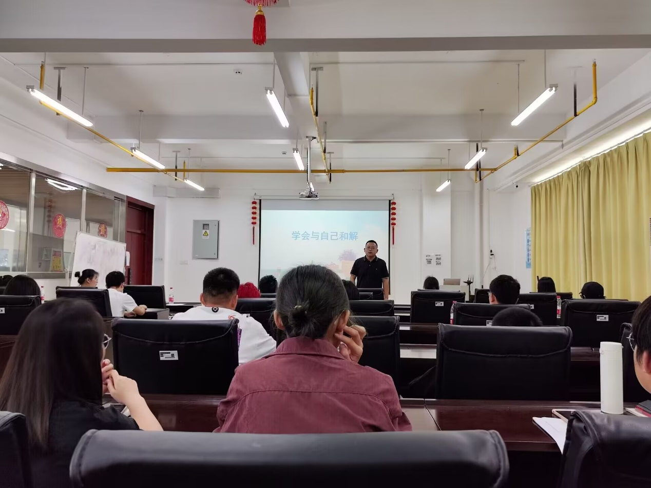 牟迪老师强调关注心理委员自身的健康也很重要,他指出:爱是接纳,爱自己不是一种自负态度,接纳自己,遇到自己不能解决的事情时,学会分享快乐与忧伤,学会善待自己和别人。心情不好的时候可以向朋友或者父母倾诉,大胆地倾诉并合理宣泄,通过适当的途径将压抑的不良情绪释放出来,也许就可以找到调整的方法,遇到不能解决的问题可以寻求老师的帮助,让自己的心理得到慰藉才能够更好的服务身边的同学。