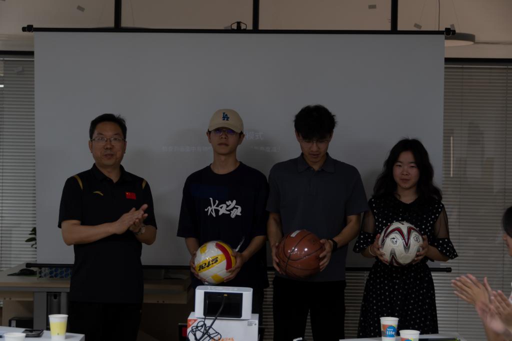 最后,杨志强向电信12201班赠送了篮球、足球、排球,希望同学们可以走出宿舍,走到操场开展体育运动,用强壮的体魄书写奋斗的青春。