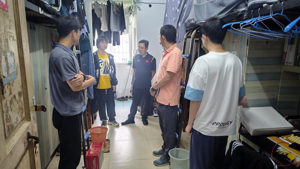 杨志强一行首先走访了结对寝室,为该寝室赠送了篮球等体育用品,详细询问了寝室每位同学的学习、生活情况,了解他们遇到的问题和困难并给予悉心指导。他结合个人经历分享了自己的大学生活,让同学们深感亲切和温暖。