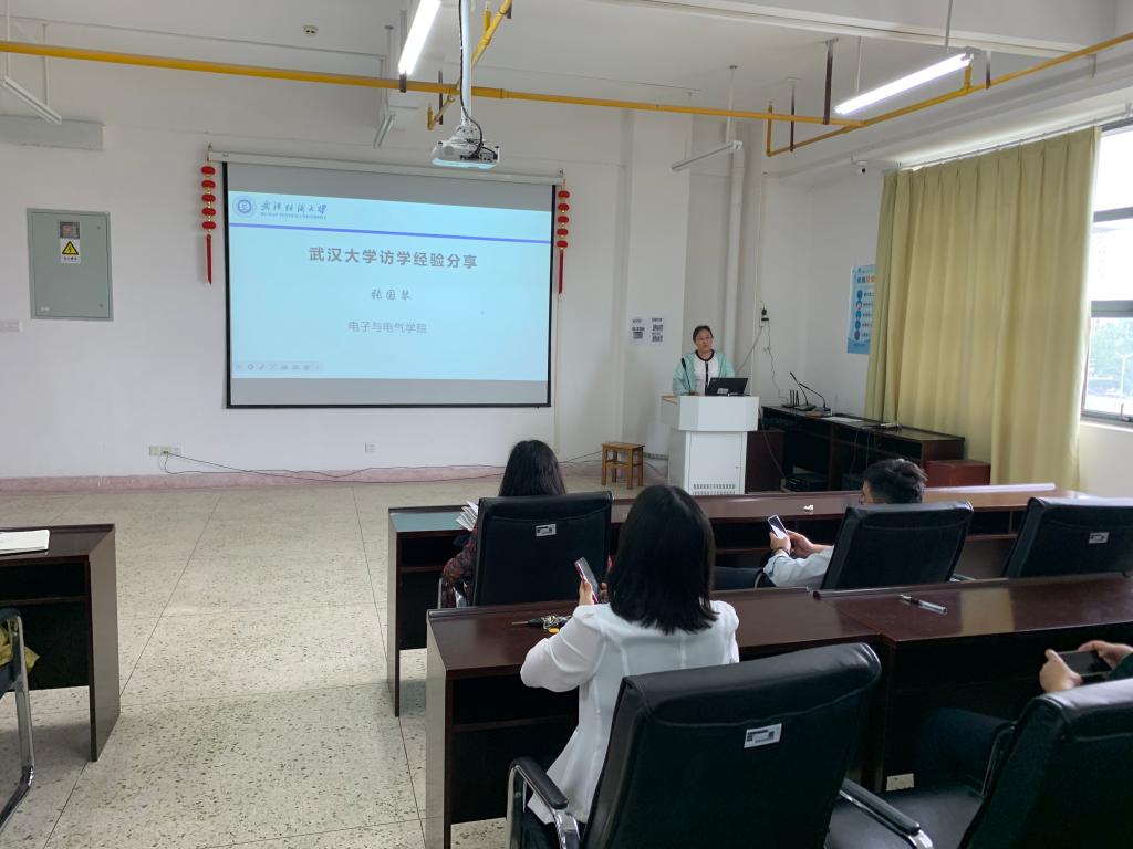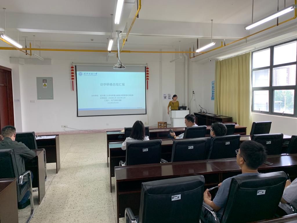 从武汉理工大学材料复合新技术国家重点实验室访学归来的胡敏博士以“钙钛矿太阳能电池的优势”为题,为各位老师介绍了访学从事的主要科研工作,分享了取得的科研成果以及心得体会。
