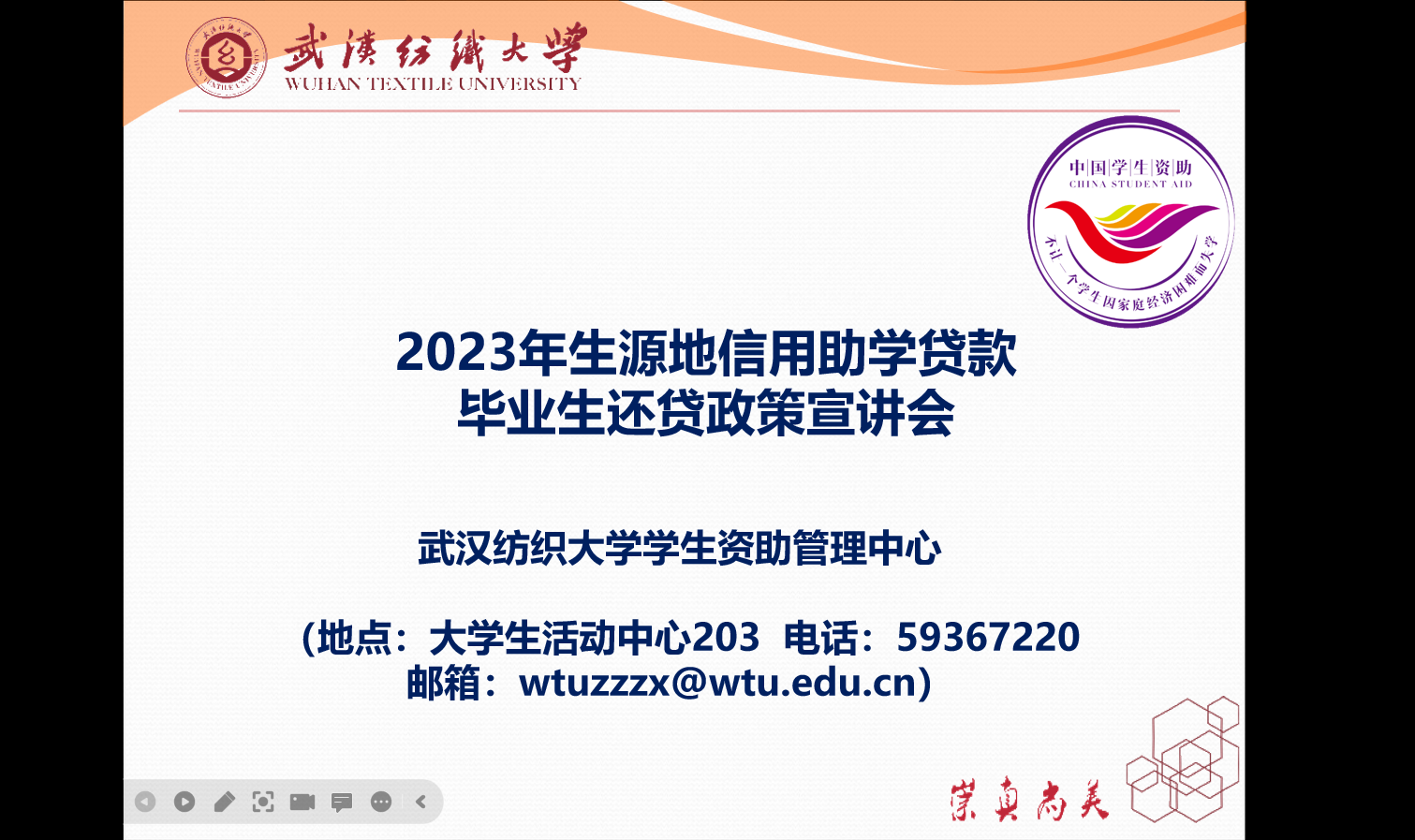 此外,学院结合毕业生离校工作方案,线上开展以“生源地信用助学贷款毕业生还贷政策”为主题的宣讲会,向贷款毕业生详细介绍了国家助学贷款政策、还款方式及流程、还贷要求和违约风险等内容,加强对借款学生的诚信教育、感恩教育、励志教育,引导学生珍爱信用,理性消费,提高征信意识,风险意识,树立正确消费观和价值观。
