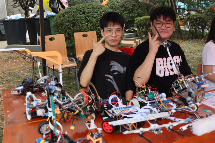 AE-86一代独轮车、鸿梦一师负压三轮电磁车、阿波罗神速摄像头三轮、新凤凰结构智能视觉车、肆零肆六第一代国一单车......在迎新现场,学长学姐纷纷拿出“看家本领”,近距离地展示科技魅力,在报到第一天为新生上好了第一堂专业课。系主任、专任老师、学长学姐变身解说员,结合电子设计竞赛等学科竞赛获奖作品和专业介绍海报,为新生、家长讲解各专业的发展前景和各类科技竞赛。新生李烨激动地说:“这个专业比我想象得有意思多了,我要加入电子设计协会,好好学习专业知识!”