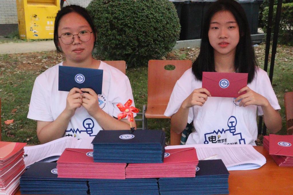 “恰逢九月时光正好”“电院正美我正年少”“逐梦电院新征程”“你好,新同学”……迎新志愿者高举创意标牌,与“吉祥物”一同热情引导新生“找到组织”,新生们拿着标语在签名墙前拍照留念,定格大学生活的珍贵瞬间。承载着梦想与希望的“许愿树”,映照着学院与萌新们之间的初遇,吸引了无数学子前来打卡。宿舍楼栋门口、走廊、迎新点摆满了气球,放眼望去,五颜六色,格外可爱。学生自发携各类乐器上阵,话筒、音响、演奏、配乐,烘托热烈氛围。从日出到日落,校园内的“红马甲”们,始终没有停下他们的步伐,用负责的工作态度和饱满的工作热情将志愿精神传播到校园里的每个角落。