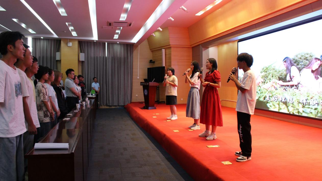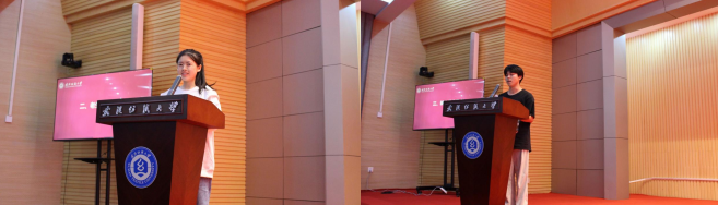 老生代表李明玉同学从自觉学习、积极实践、勇于尝试等五个方面给学弟学妹们分享了自己宝贵的经验,鼓励大家在大学的岁月里收获丰硕的知识和技能,结交真挚的友谊。新生代表李烨同学表示非常期待大学生活,也会努力秉持“经天纬地,自强不息”的纺大精神,借助新时代的伟力,奋斗在阳光之城、汤逊湖畔。