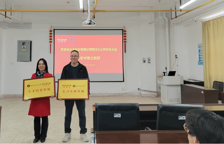 会上,学院与固德威公司还举行了实习实训基地揭牌仪式,副院长韩谷静教授、固德威公司研发总监潘冬华博士分别作了热情洋溢的致辞,鼓励同学们充分利用好实习实训基地,投身实践,提高自己的专业能力。