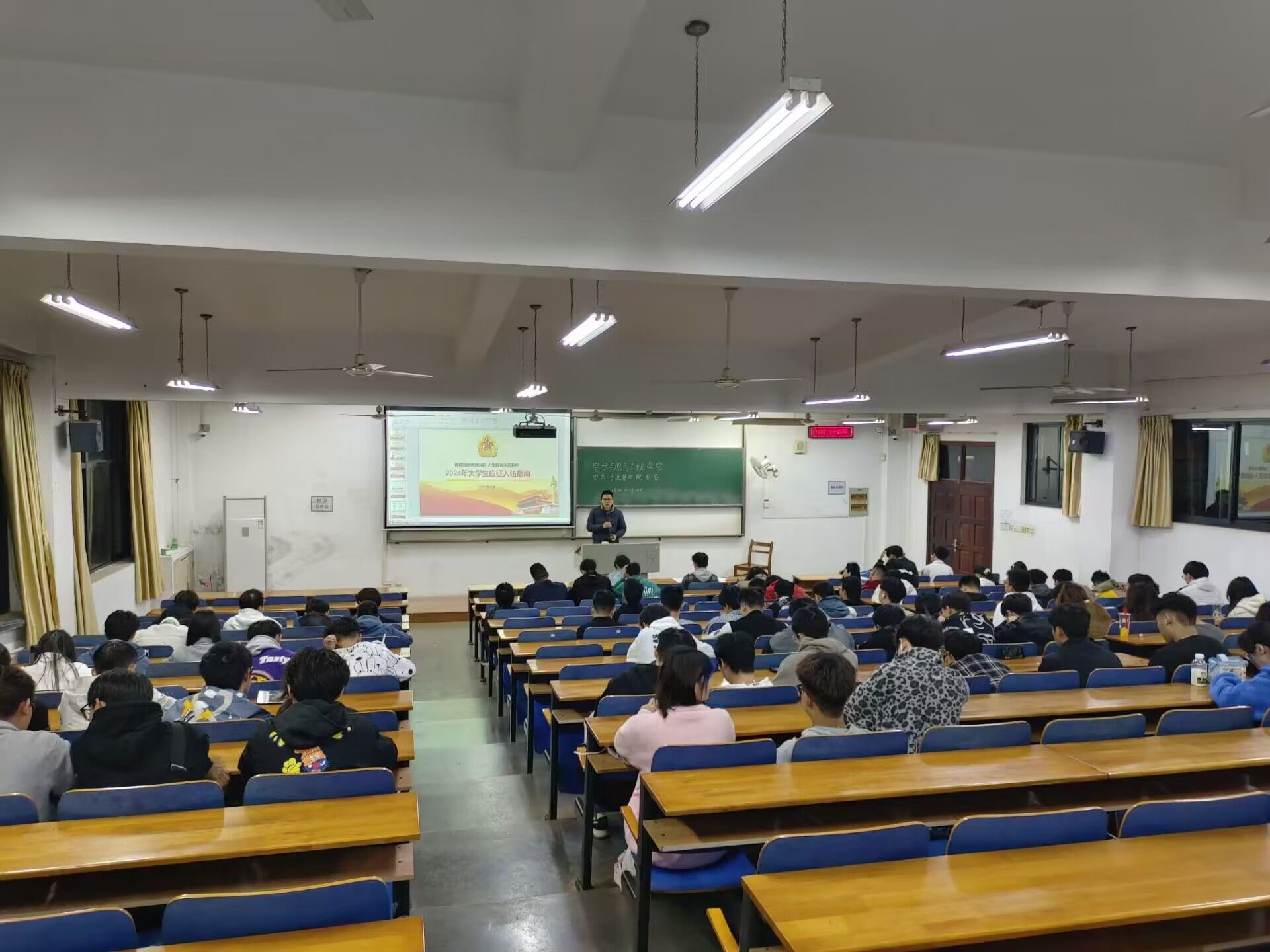 各年级辅导员分别从应征入伍基本条件、入伍流程、大学生参军特别优惠政策等方面向学生们进行了讲解,并强调了报名注意事项。2020级辅导员涂亚腾就毕业生当兵退役复学后考研、经济补贴方面进行了详细介绍;2021级辅导员石亚楠、冉晨,围绕我国征兵政策和参军流程展开,为大三学生们讲述了投身火热军营,献身国防事业的重要性,同时提醒计划参军入伍的同学们注意电信诈骗;2022级辅导员张朋龙讲解了大学生入伍的各种优势,鼓励青年学生投身于建设祖国国防的火热实践中;2023级辅导员陈珍通过晚点名的形式,向新生们宣讲了入伍基本政策,同时介绍了军营生活,激起了广大学生的热情,在宣讲会结束后,还通过线上与线下的方式向辅导员询问更多大学生入伍的相关情况。