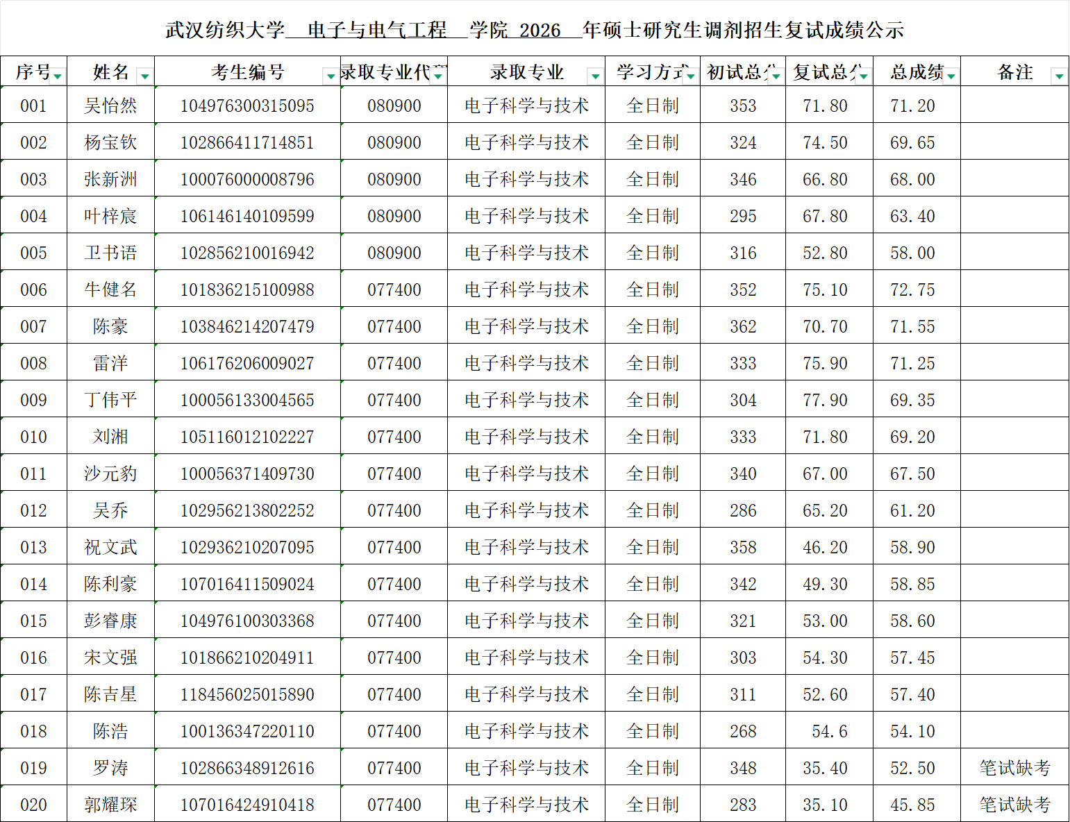 WilliamHill中文2026年硕士研究生调剂招生复试成绩公示(二)