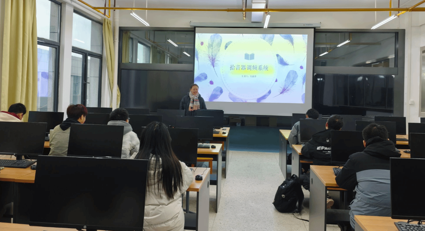 首先创新实践中心田裕康主任介绍了学院创新实践中心的基本情况,给同学们指明了大学的学习路径。随后,何帅同学以自己参加全国大学生电子设计竞赛的项目“简易录音屏蔽系统”为例,从赛题任务、设计思路、设计方案、结果分析、比赛心得等方面对项目进行介绍,并鼓励各位学弟学妹多学习、多参与实验室项目,不断地锻炼自己,用自己的学识与技能创造出自己想要的作品!