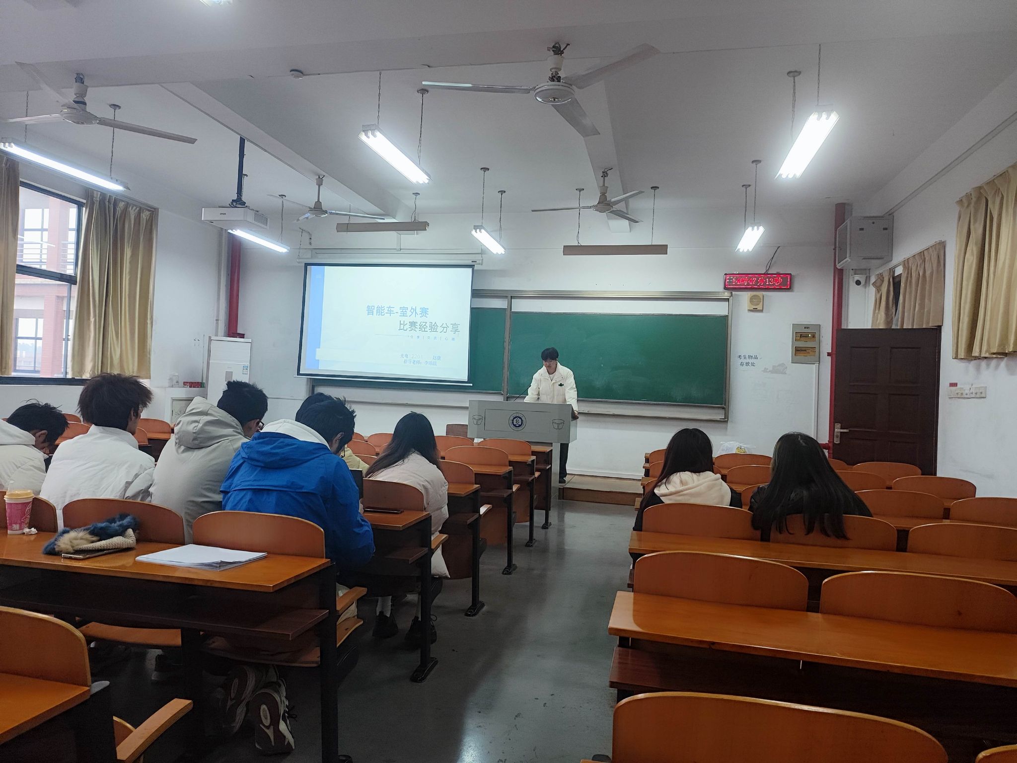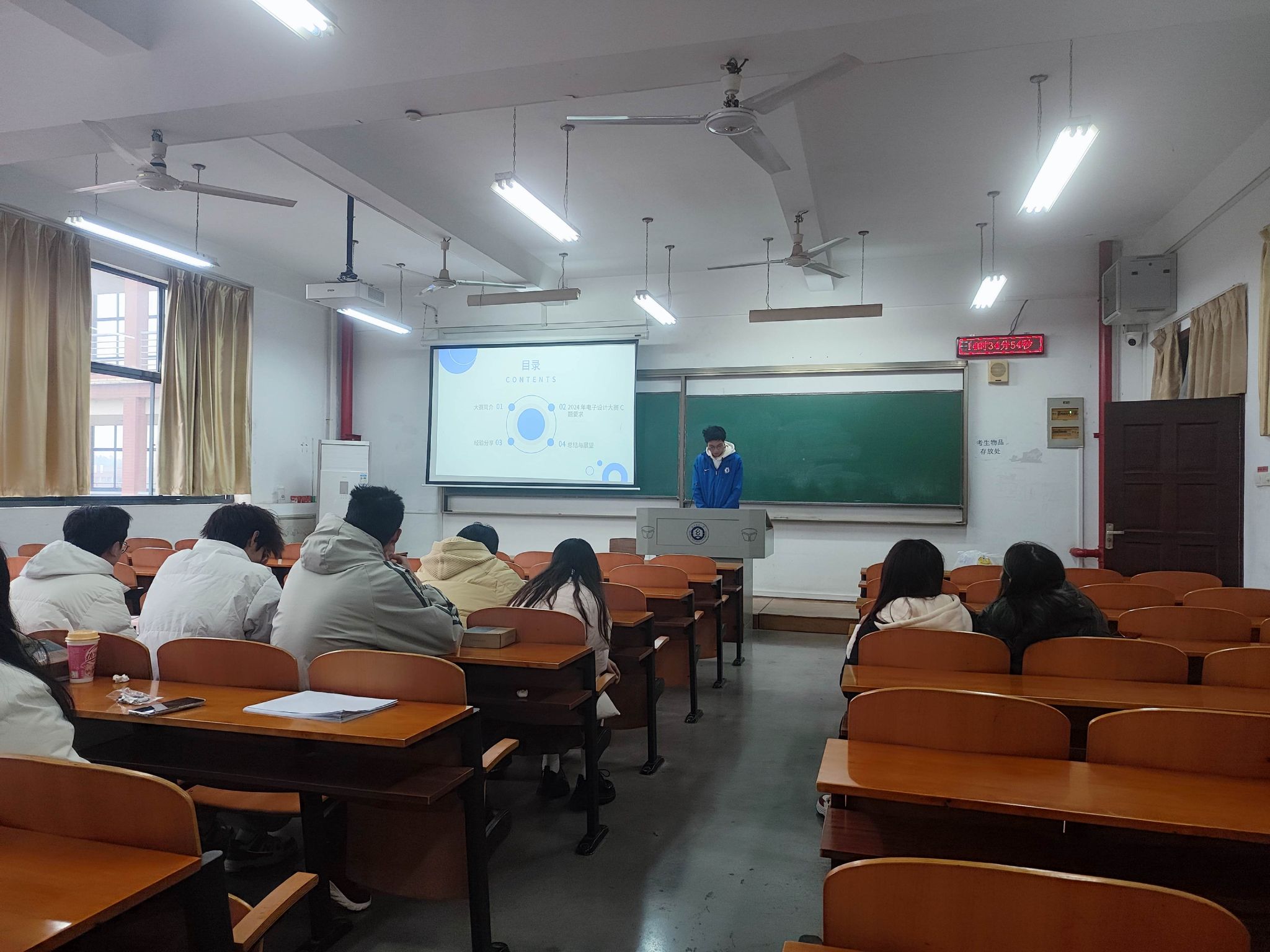 本次论坛邀请到了通信专业的李博轩、赵柘豪和光电专业的赵骁三位同学。李博轩同学获得了蓝桥杯单片机赛道全国一等奖,他详细地介绍了该赛道的比赛内容以及比赛规则,并分享了如何准备该项比赛以及在比赛中遇到困难该如何正确的应对。赵柘豪同学经过一年的准备参加了今年的全国大学生电子设计竞赛,选择了通信类赛题,该类赛题一般难度较大,比赛过程中他们组核心任务都已完成,但是基础部分有点小失误,导致最后成绩不太理想,但是整个参赛经历让他无论从知识层面还是心理层面都成熟了不少。赵骁同学主要参加的是全国大学生智能汽车竞赛室外赛,这项赛事需要学生掌握较多的知识,他从比赛历程、赛事简介、经验分享和备赛计划四个方面分享了该项比赛的相关内容。