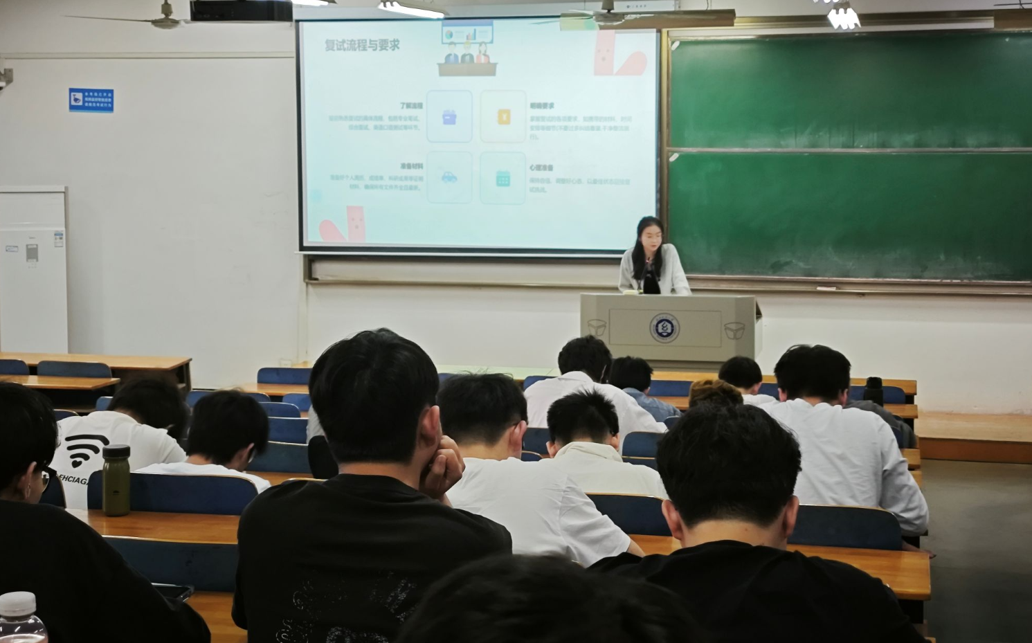 首先郭旻老师介绍了电子信息工程专业21级学生考研和就业的基本情况,给同学们指明了大学的学习路径。随后,冯宛凌同学以“NBIoT防盗报警网关设计”为例,从项目任务、设计思路、设计方案、结果分析等方面对项目进行介绍,并鼓励各位学弟学妹多学习、多参与实验室项目,不断地锻炼自己,用自己的学识与技能创造出自己想要的作品!