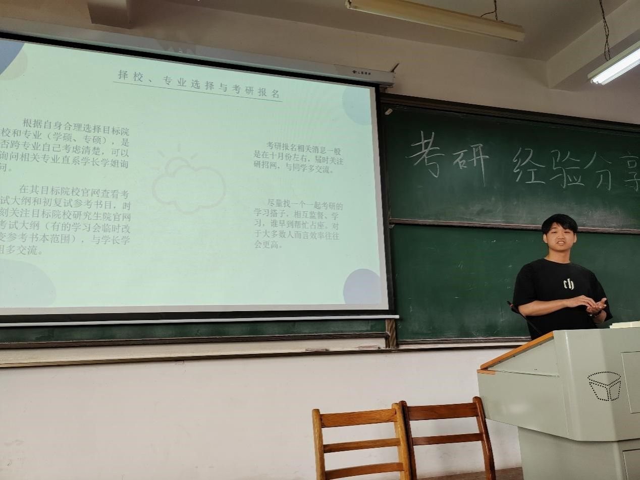 电气12001班张欣怡、王炳汶,电气12003班文佳豪,电气12004班周浩远,电气12005班孟子硕五位同学依次上台分享了他们的备考经验。他们围绕考研信息、个人定位、目标制定、备考规划和复习方法、压力疏解、备考和考试心态等方面,为在座的同学们带来了宝贵的经验和建议,让在场的同学们受益匪浅。他们强调,考研不仅是对知识的检验,更是对个人意志力和自我管理能力的考验,在规划时,要充分考虑自己的实际情况和目标院校的招生要求,合理安排复习时间和复习内容。