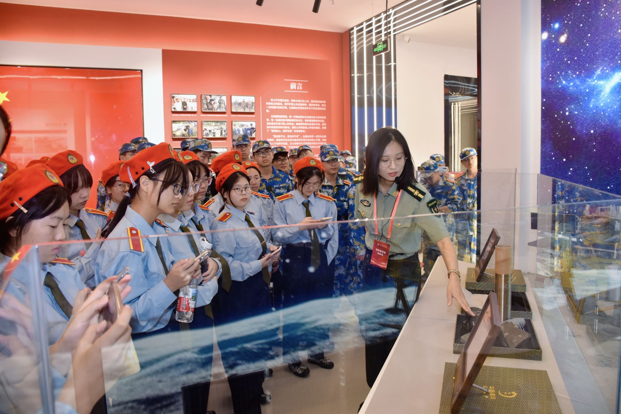 根据学校统一部署,新生在军训期间系统接受消防应急救援演练、防范电信网络诈骗专题培训等安全教育课程,通过实景模拟、案例剖析等形式强化安全防护意识。学院带领新生分批参观纺织科技馆与国防教育馆,通过近距离观摩科研成果展示,系统了解纺织科技在国防领域的创新应用与战略价值;组织学生参与职业生涯体验活动,为专业认知与职业规划奠定基础。