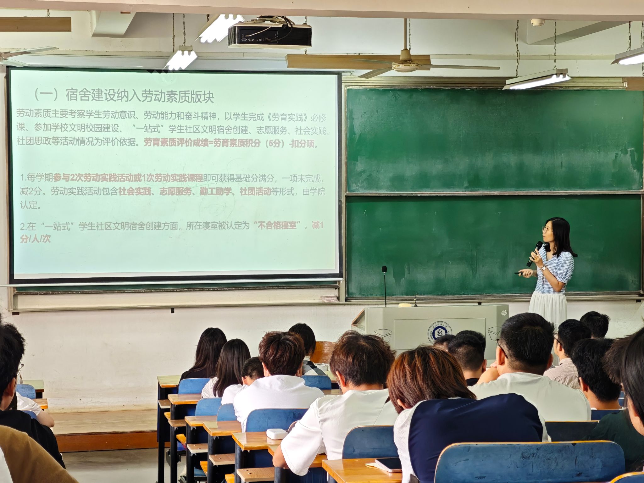 针对宿舍文明建设工作,学院进一步解读了学校的奖惩激励机制。强调,学生在宿舍的日常表现及寝室长的履职情况将纳入学生综合素质评价体系,学院鼓励全体寝室长积极组织宿舍成员参与宿舍文化建设活动,共同营造文明和谐的宿舍文化氛围。