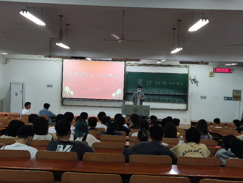 5月23日下午,WilliamHill中文在阳光校区崇志楼120教室成功举办“三支一扶”政策宣讲会,中公教育冀政老师主讲,辅导员吴昊、牟迪以及各年级学生参加了此次活动。
