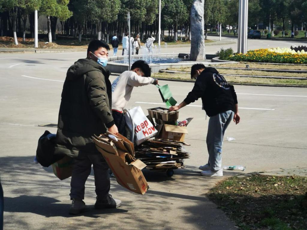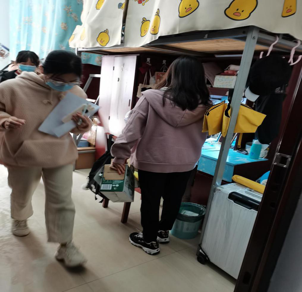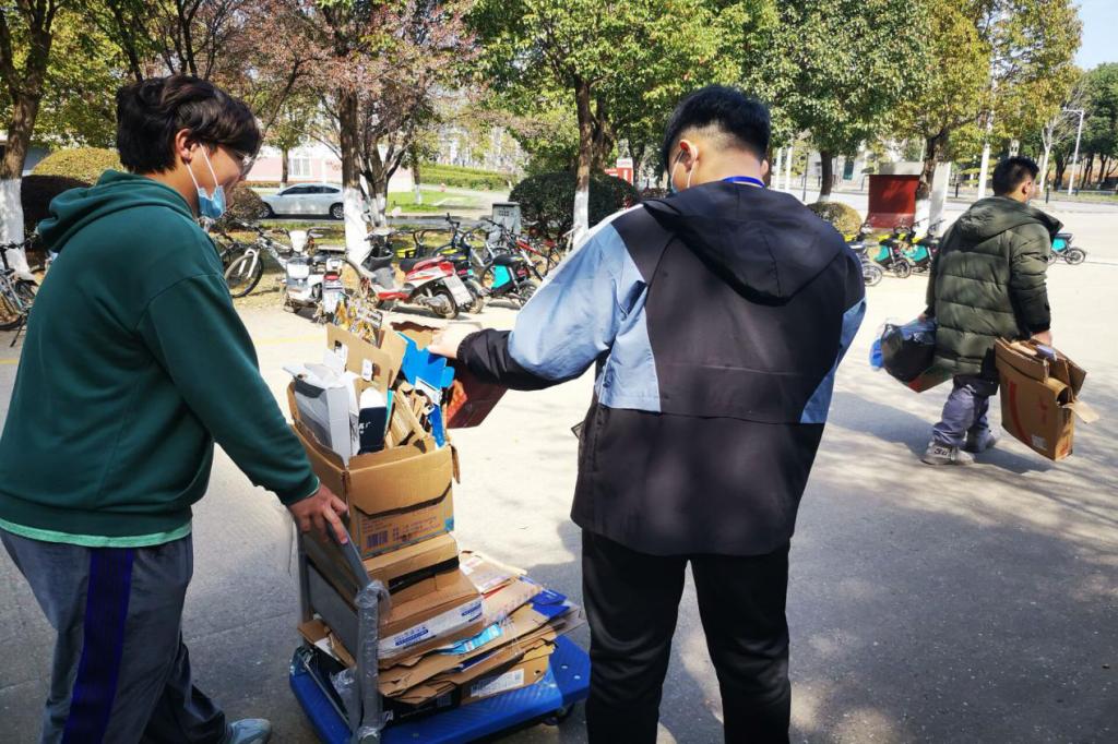 此次活动在宿管会部长朱敏和志愿服务部部长骆亚星的组织下,所有志愿服务的干事们,佩戴好口罩,携带工作牌,分成8个小组,深入我院楼8栋、11栋宿舍,进行纸盒回收的活动。