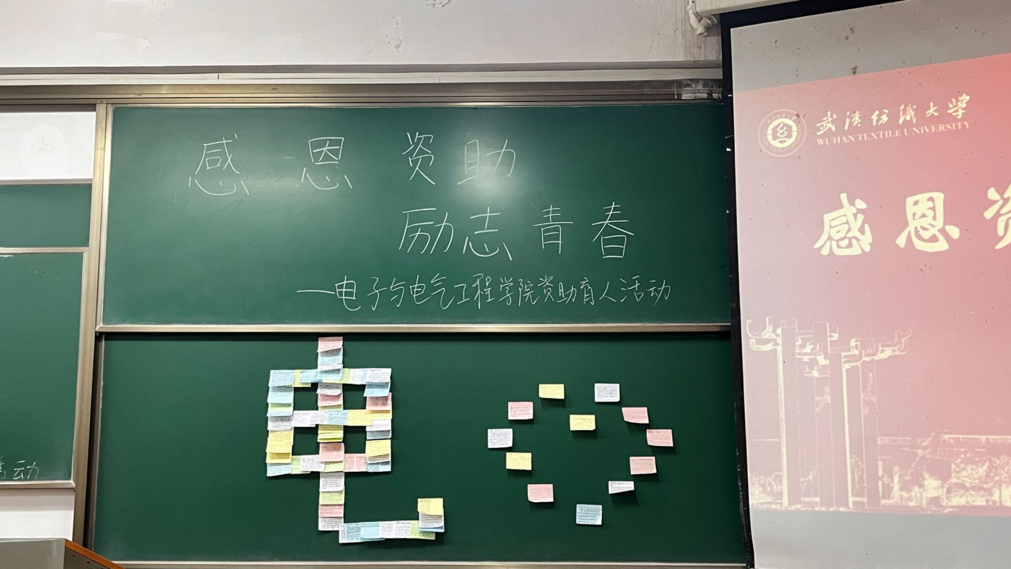 随后,同学们领取便利贴后,开始思考如何书写心中的感恩。或感恩着父母的养育之恩,或激荡着师长的教导之恩、朋友的相知之恩,亦或是徜徉着命运的馈赠之恩,一张张真情实意的纸张浸满了同学们的感恩之心。