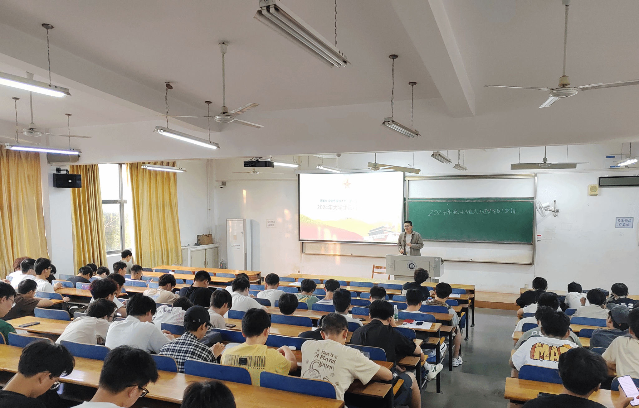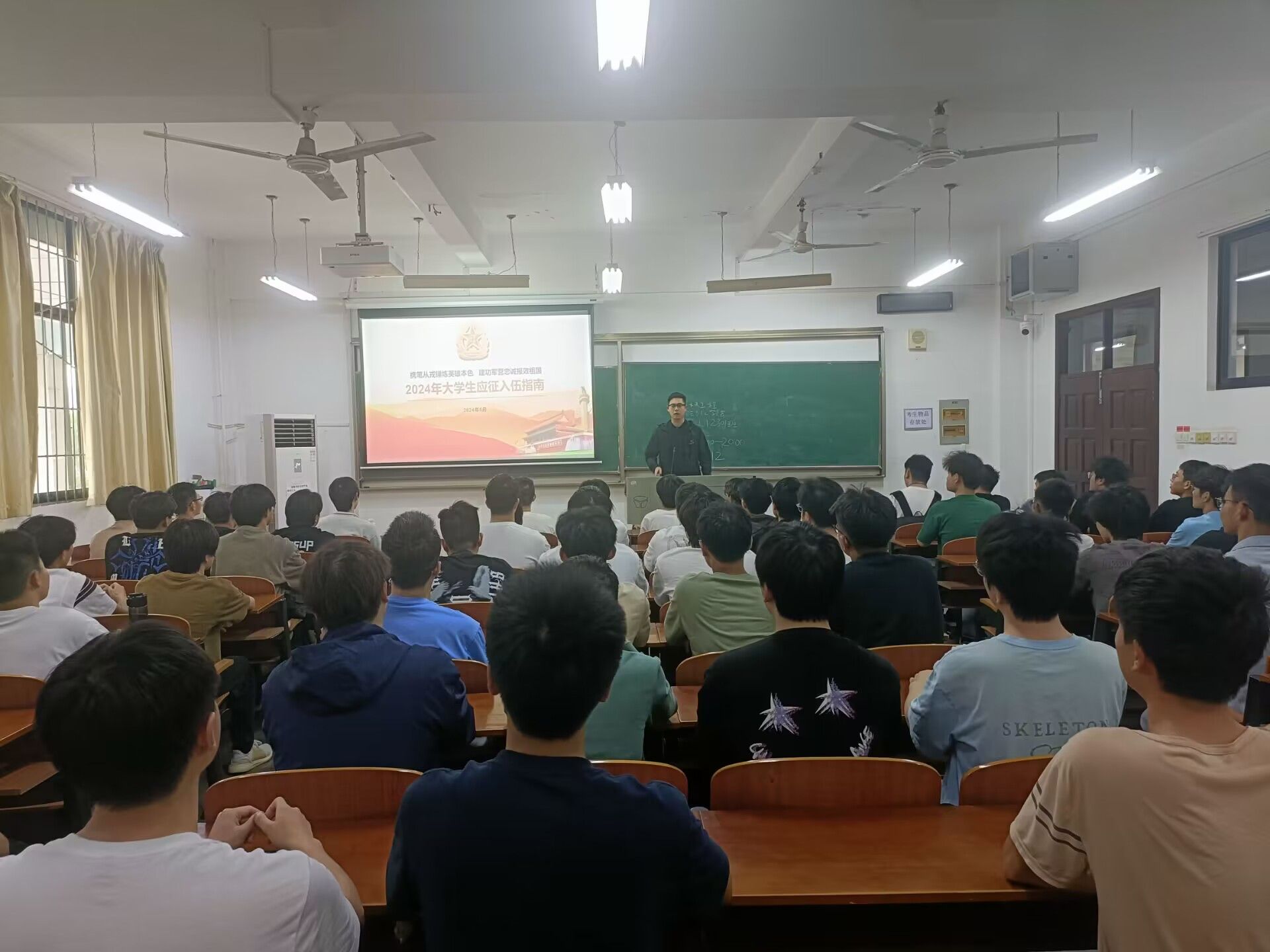 各年级辅导员深入解读当前国家征兵政策,明确入伍条件与程序,引导和鼓励广大适龄青年学子响应号召,激发其爱国热情,主动投身到新时代的国防建设中去。2020级辅导员涂亚腾就毕业生当兵退役复学后考研、经济补贴方面进行了详细介绍;2021级辅导员石亚楠、冉晨,围绕我国征兵政策和参军流程展开,为大三学生们讲述了投身火热军营,献身国防事业的重要性,同时提醒计划参军入伍的同学们注意电信诈骗;2022级辅导员张朋龙讲解了大学生入伍的各种优势,鼓励青年学生投身于建设祖国国防的火热实践中;2023级辅导员陈珍通过晚点名的形式,向新生们宣讲了入伍基本政策,同时介绍了军营生活,鼓励同学们结合自身从军报国的责任和就业需求积极报名参军,以青春热血助力改革强军伟业,通过拼搏奋斗奠定人生成长基石。