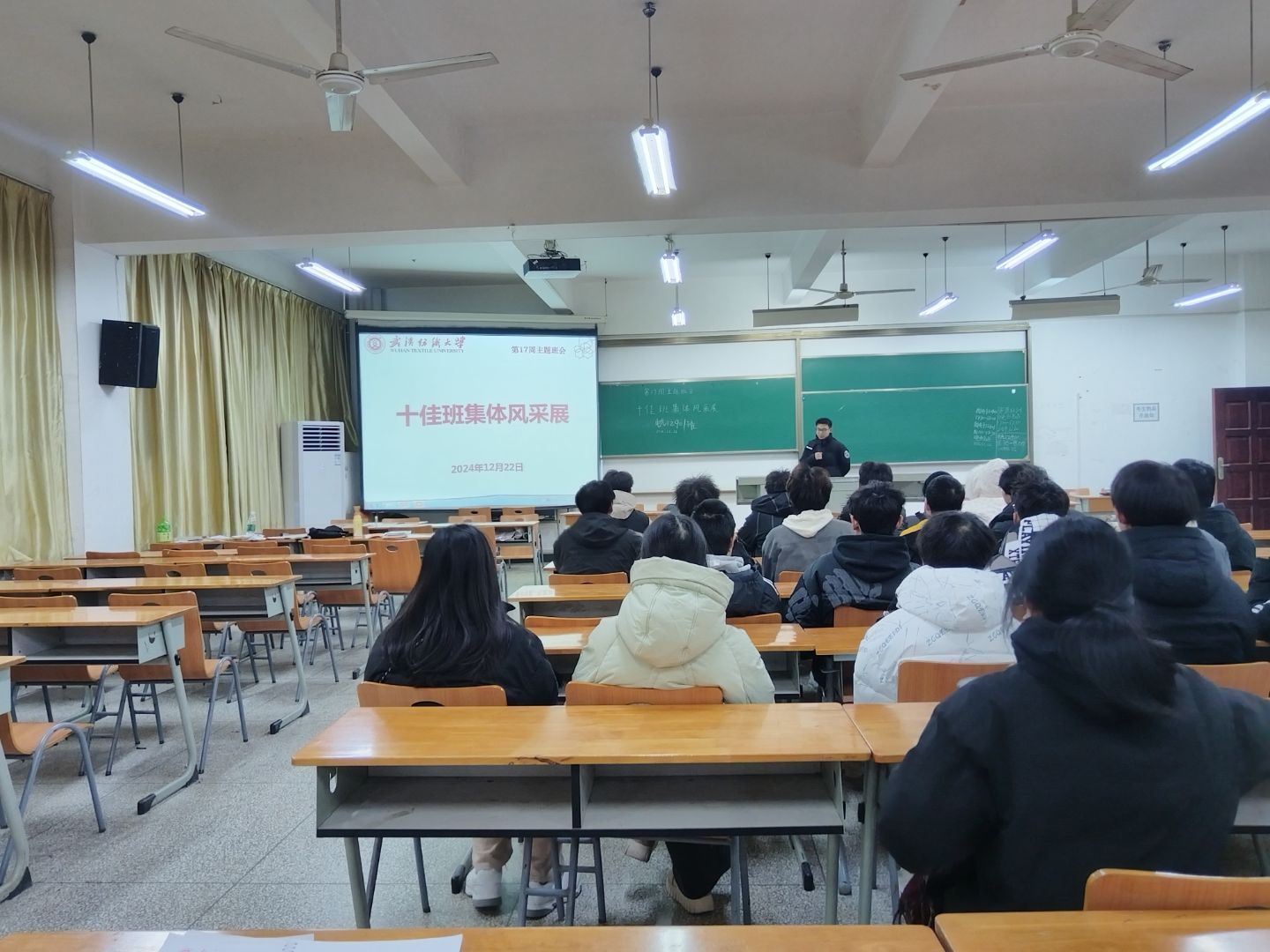 班会开场之际,首先深入阐释了此次评选工作所蕴含的深远意义,随后逐一呈现各个十佳班级的非凡魅力与卓越成就。外国语学院英语12202班党员及入党积极分子众多,更在各类竞赛中屡获佳绩,展现出强劲的实力与拼搏精神;服装学院服设12203班则以优异的学业成绩令人瞩目,无论是斩获各类重磅奖项,还是在专利申请以及志愿服务等多元领域,均有着极为突出的表现,彰显出全面发展的特质;经济学院金融科技 12201班与WilliamHill中文通信12301班,在竞赛获奖数量上表现卓越,奖学金获得人次颇为可观,学习成绩持续保持领先,无论是学科竞赛领域,还是文体活动舞台,都绽放出绚丽光彩;机械工程与自动化学院自动化12202班在学科竞赛、社会实践以及学术成果方面均成绩斐然,展现出深厚的学术底蕴与实践能力;伯明翰时尚创意学院环设62202班与计算机与人工智能学院软件12204班同样收获众多奖项,在学术竞赛的战场上一路高歌猛进,书写着属于自己的辉煌篇章。此外,资源与环境学院环科 12201班、化学与化工学院应化12101班以及传媒学院广告12202班的同学们,也各自有着独特的闪光点与可借鉴之处,值得全体同学深入学习与效仿。