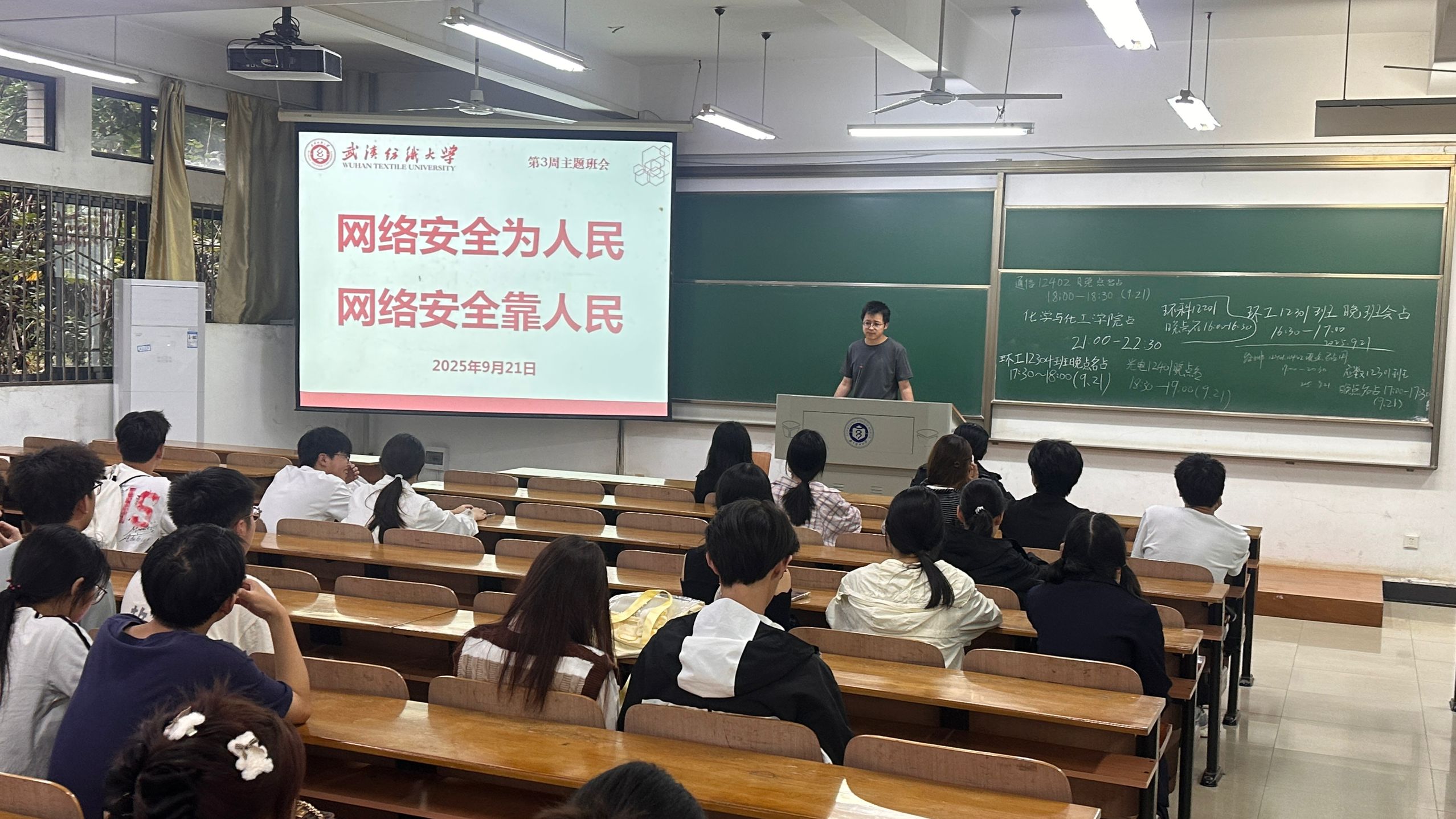 班会伊始,辅导员以国家网络安全宣传周为切入点,并围绕关键信息基础设施网络安全保护、数据安全、个人信息保护、网络安全教育技术产业融合发展、电信网络诈骗、人工智能安全等方面,结合有关典型案例以及相关政策与治理倡议,给予了有效的防范风险建议。此外,为了促进毕业生高质量充分就业,毕业年级辅导员鼓励学生积极参与校园招聘会活动,寻找心仪的工作岗位。