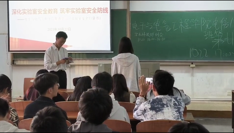 各班级通过观看视频、案例教学、小组讨论、趣味问答的形式对《实验室安全口袋书》展开全方位学习,现场学习氛围积极浓厚。各班级班主任、副班主任、班长从一般安全守则、消防安全、水电安全、化学品安全、生物安全等方面进行讲解,并强调实验室安全是科研工作的首要前提,希望新生们能够高度重视实验室安全,严格遵守实验室的各项规章制度。2023级本科生辅导员辅陈珍、研究生辅导员彭斯要求大家认真学习领会培训内容,内化于心,外化于行,真正营造学院人人要安全、人人重安全的良好氛围。
