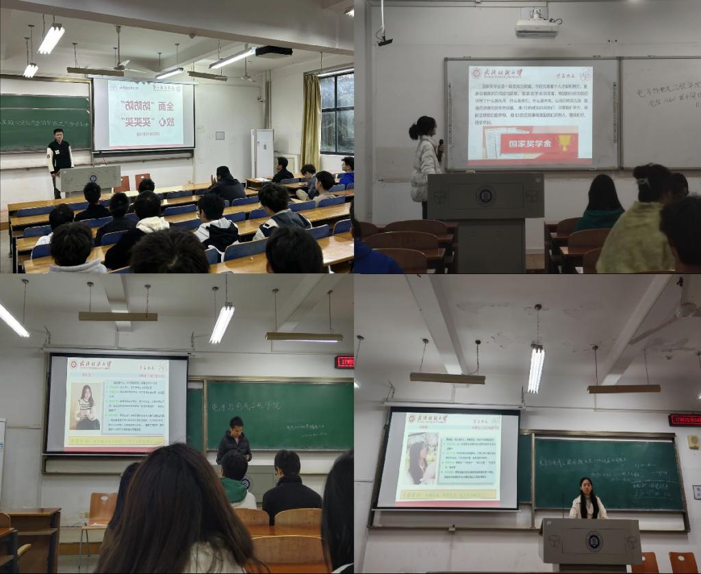 班会接下来介绍了学校获得国家奖学金的同学们,他们各有所长,都是自己学院的佼佼者,在不同的比赛,不同的领域都取得了不菲的成绩。学院号召同学们向国家奖学金获得者看齐,通过自己的努力不断提高,不断完善自己,相信每位同学都能不负韶华,实现自己的人生理想。