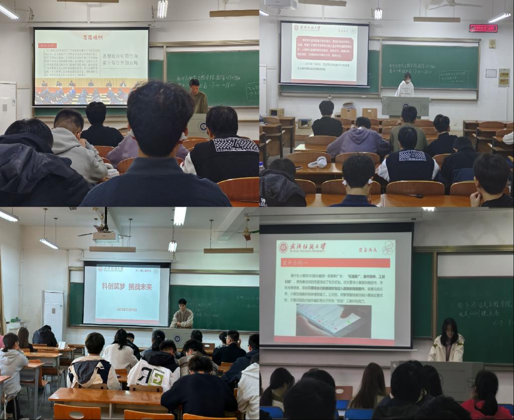 班会介绍了习近平总书记在创新创业方面发表的重要讲话。表达了习近平总书记对青年的殷切期望,并介绍了科研竞赛,鼓励同学们积极参与提升自我。班会上老师展示了我校师生出征终审决赛的优异成绩,并对获奖的团体表示祝贺。青年学子要树牢科技报国志,刻苦学习钻研,勇攀科学高峰,在推进强国建设,民族复兴伟业中绽放青春光彩。要敢于做先锋,而不做过客、当看客,让创新成为青春远航的动力,让创业成为青春搏击的能量,让青春年华在为国家、为人民的奉献中焕发出绚丽光彩。