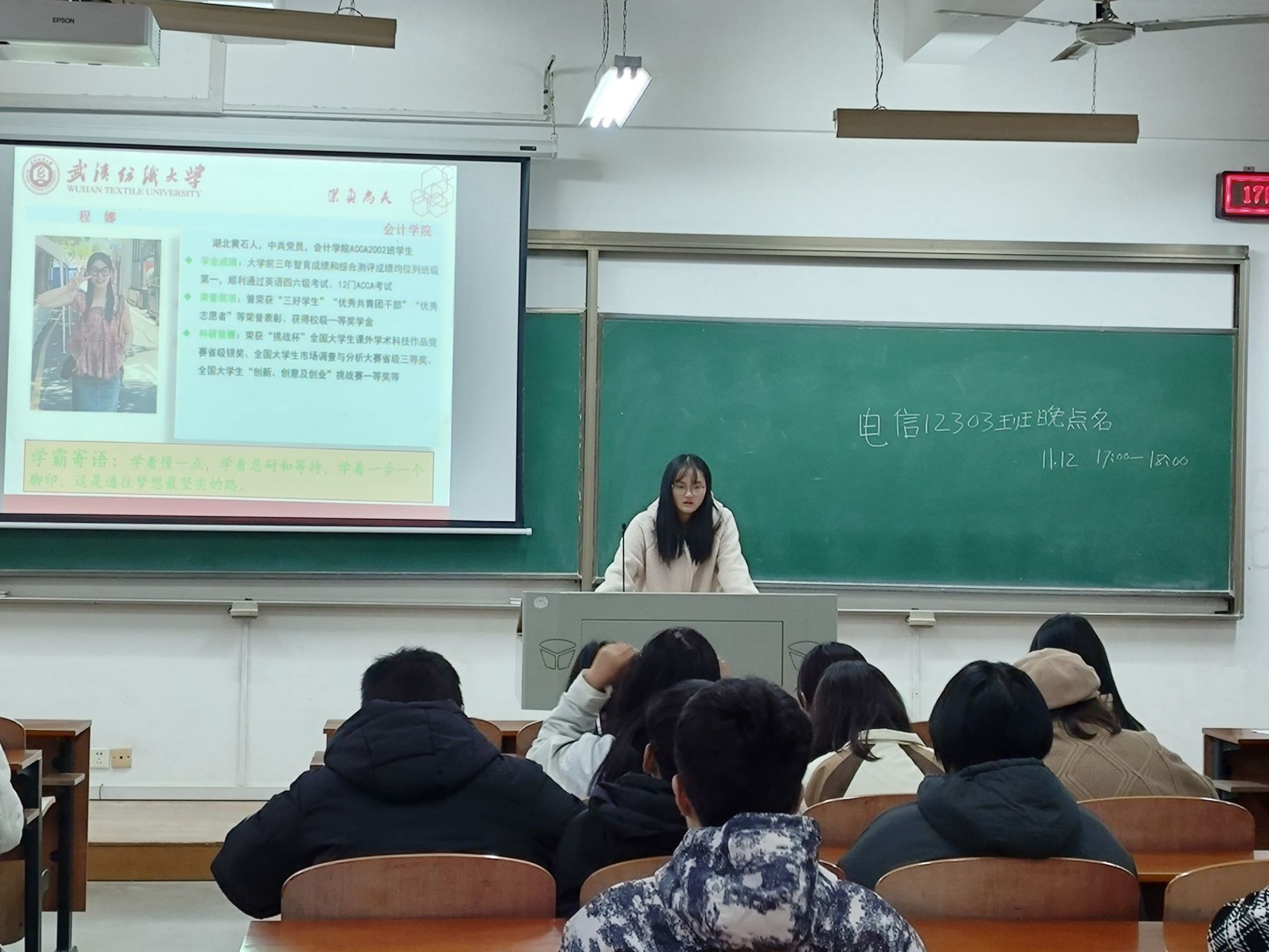 班会展示了“纺大人”并肩携手、互为支撑,为把williamhill中国早日建成特色鲜明的高水平大学而努力奋斗的决心。一朝纺大人,一生纺大情,会上讲解了田书记提出的四点希望:凝聚共识、守正创新、厚植情怀、同频共振,校友是母校最靓丽的名片,都是需要我们“纺大人”共赴新征程,创造新成就、实现新跨越。力往一处使,方能使希望成现实。随后老师为客座教授和就业指导与生涯规划导师颁发聘书以及展现讲解了我校部分优秀校友,为我们树立了良好的榜样和荣誉。