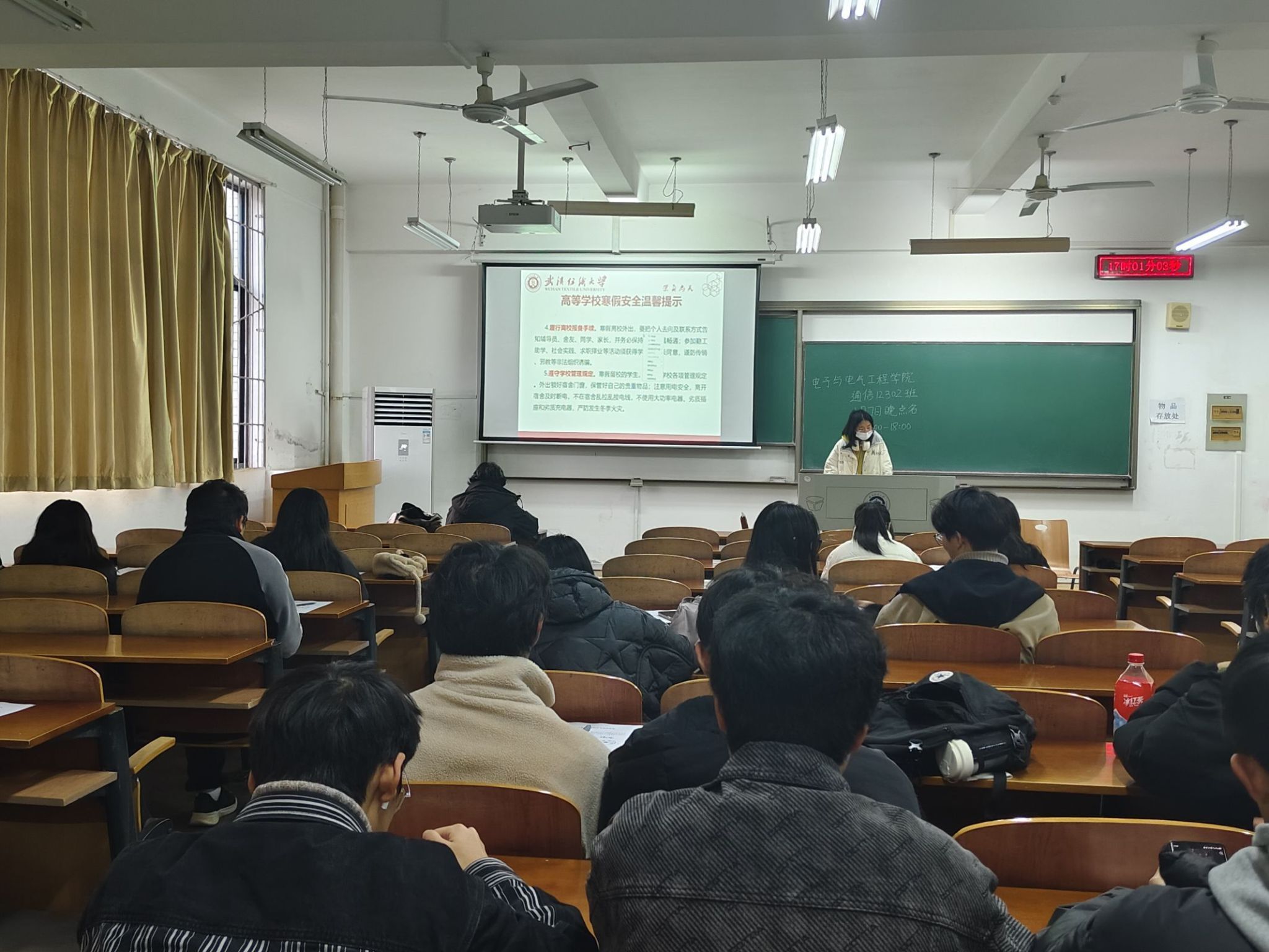 冬日的脚步悄然而至,寒风中却弥漫着青春的热情与活力。在2023-2024学年度的尾声,电子与电气学院开展了“文明离校,平安假期”主题班会,旨在引领同学们践行文明离校,确保安全度过假期。班主任、副班主任和辅导员共同主持班会。此次班会紧密围绕省教育厅寒假安全温馨提示,强调了离校、交通、卫生、消防、心理、网络、兼职及孝敬长辈等方面的注意事项。