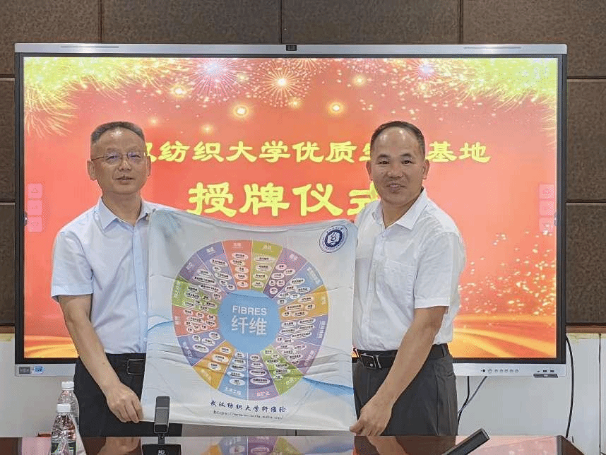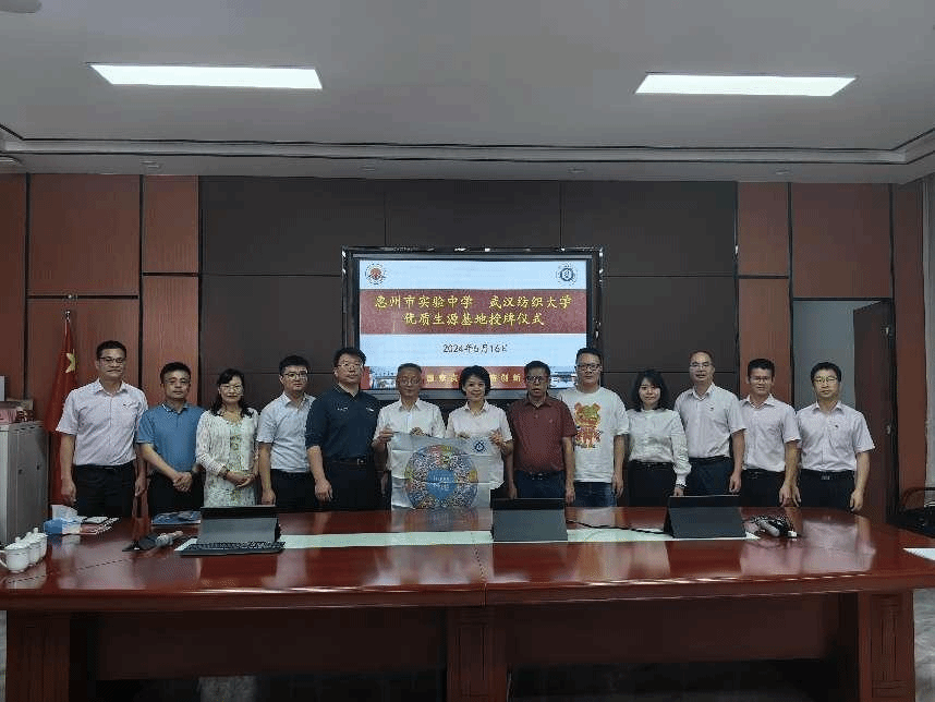 (向惠州实验中学授牌并赠送“纺大纤维轮”)